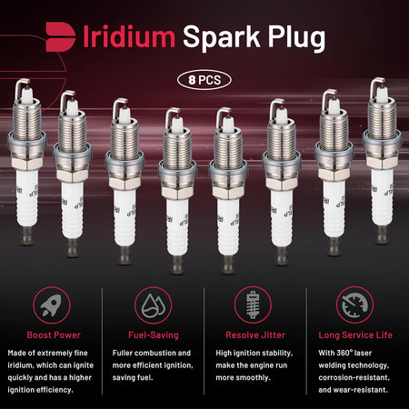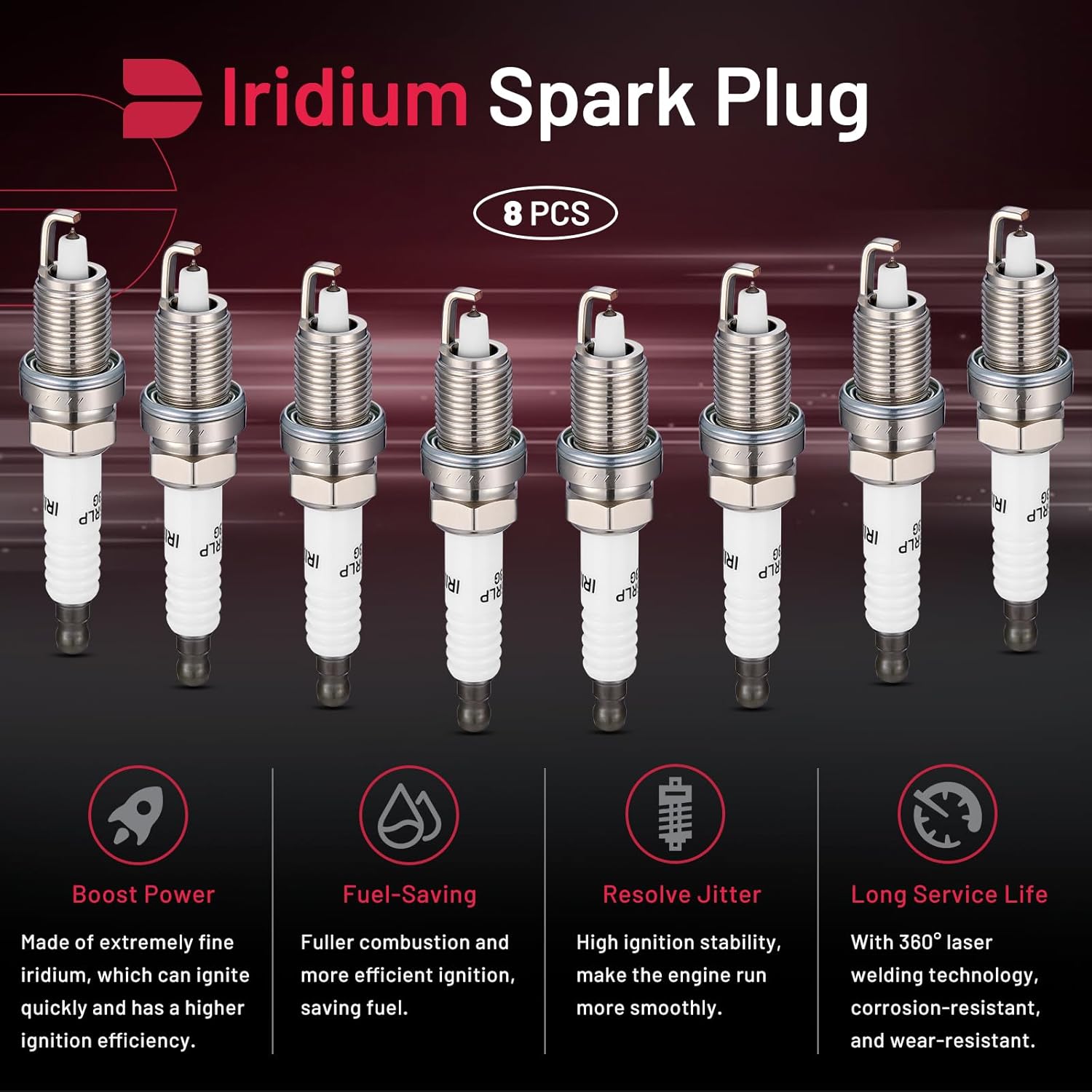 BDFHYK 7781 Iridium Spark Plugs Compatible with Chrysler 300 Pacifica Sebring Town & Country,Compatible with Dodge Avenger Challenger Charger Grand Caravan Journey Magnum Nitro, VW Routan Set of 8