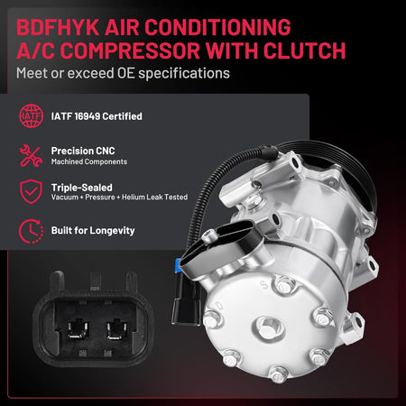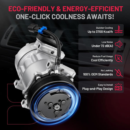 Reliability & Performance - 100% Brand New | IATF 16949 Certified | 50,000-Mile Accelerated Life Tested | Triple-Sealed: Vacuum + Pressure + Helium Leak Tested (99.9% Leak-Free) | Precision CNC-Machined Components | Faster Cooling & Quieter vs. Standard Compressors | Built for Longevity