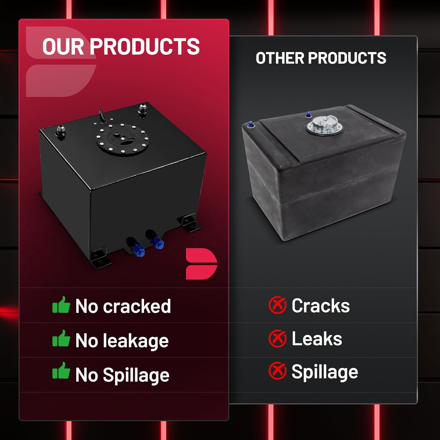 Application: Drift Fuel Cell increase the fuel storage capacity of your vehicle and are compatible with fuel, diesel, alcohol, methanol, water, and ethanol. (Note: not compatible with alcohol, methanol, ethanol if used with CPE fuel line)