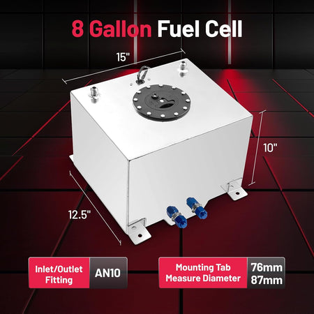 BDFHYK 8 Gallon Fuel Cell Gas Tank Aluminum Polished Sliver with Level Sender 15" (L) x 12.5" (W) x 10" (H) Racing Street Drift Strip Fuel Tank Fuel Cap