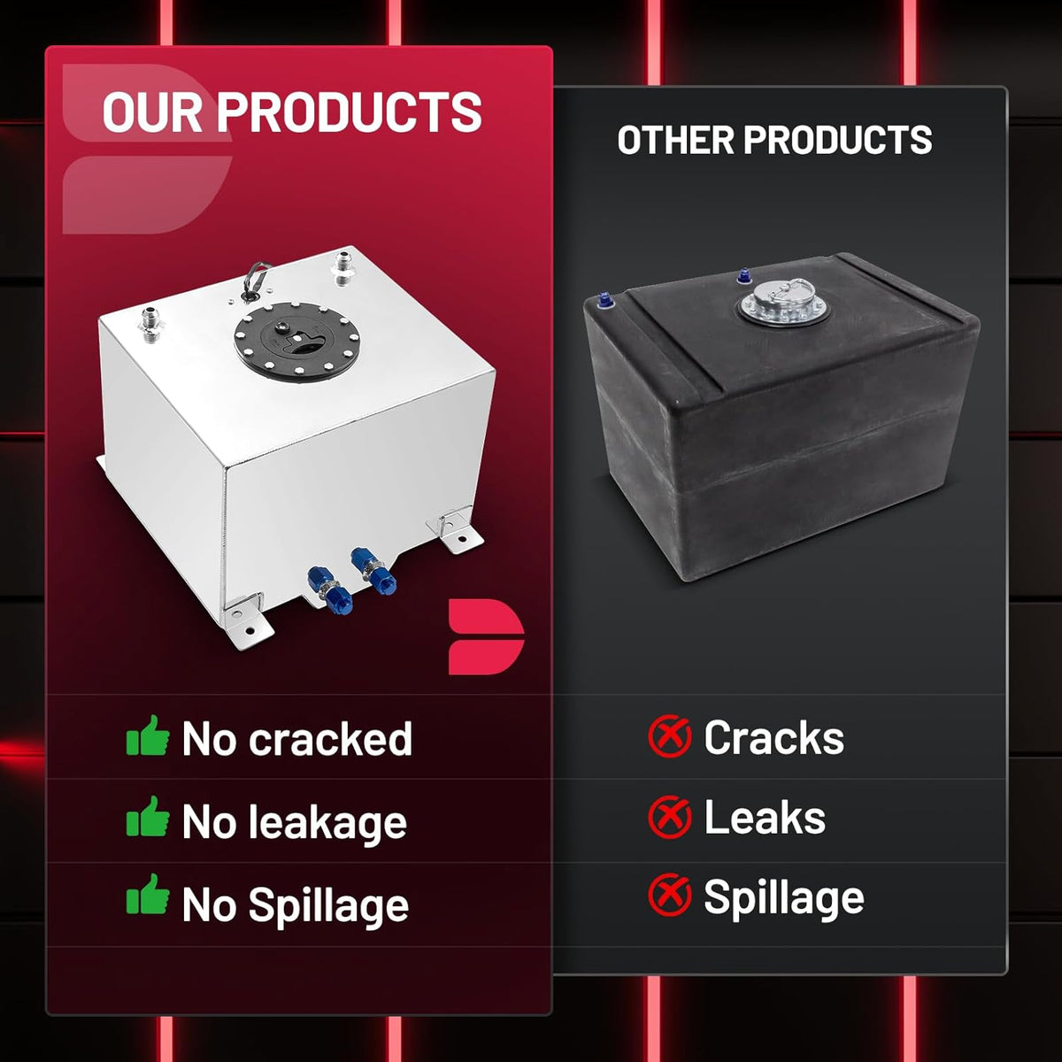 Application: Drift Fuel Cell increase the fuel storage capacity of your vehicle and are compatible with fuel, diesel, alcohol, methanol, water, and ethanol. (Note: not compatible with alcohol, methanol, ethanol if used with CPE fuel line)