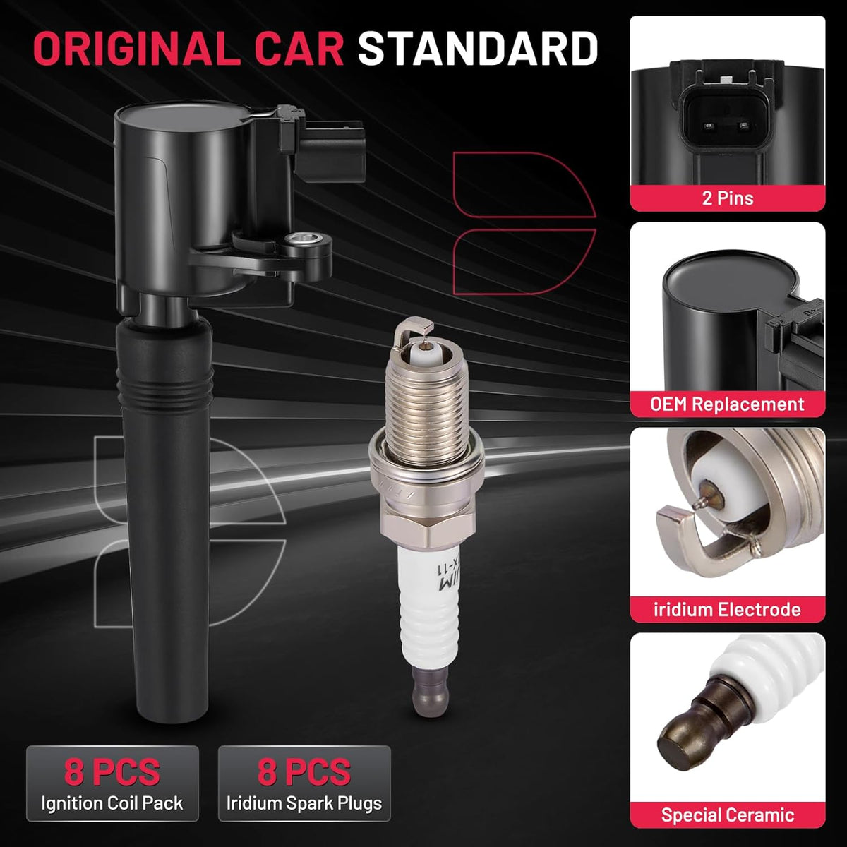 【Basic Info:】Ignition Coil FD506 & Spark Plugs 4503 Compatible with Lincoln 2000-2006 LS; Compatible with Ford 2002-2005 Thunderbird. Please check detail fitting info from pics or detail page. Please choose suitable coil pack and plugs with confidence.
