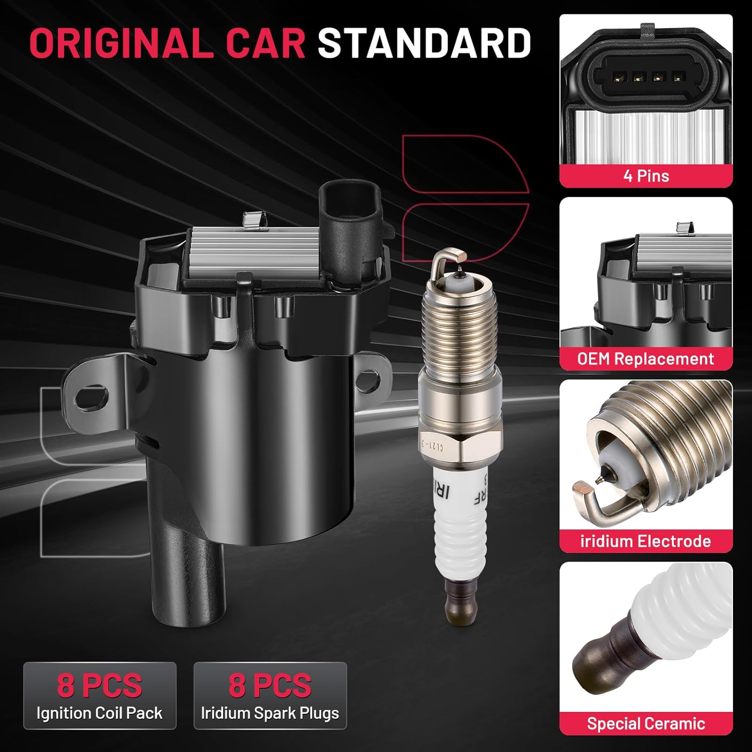 BDFHYK 8 Ignition Coil Pack UF262 and 8 Iridium Spark Plug 3186 Compatible with GMC Sierra Savana Yukon Envoy, Compatible with Chevy Silverado Suburban Express Avalanche 1500 2500 3500 Tahoe Escalade