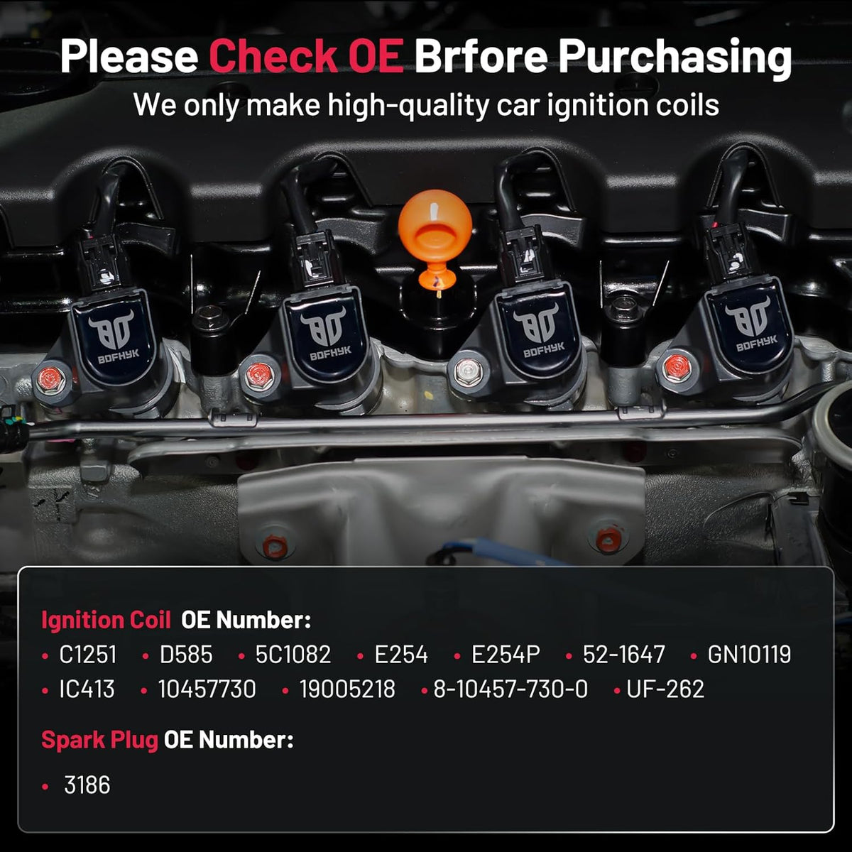【Yes, you need a new coil and spark plug!】If your car has been used for a long time(over 80000km) and has problems like car shaking, start-up failure, speeding up slowly, and increasing fuel consumption, you may need to change a new set of spark plugs and coil packs. BDFHYK ignition coil packs and spark plugs can offer you a professional user experience and make your car like new. You may choose it with confidence.