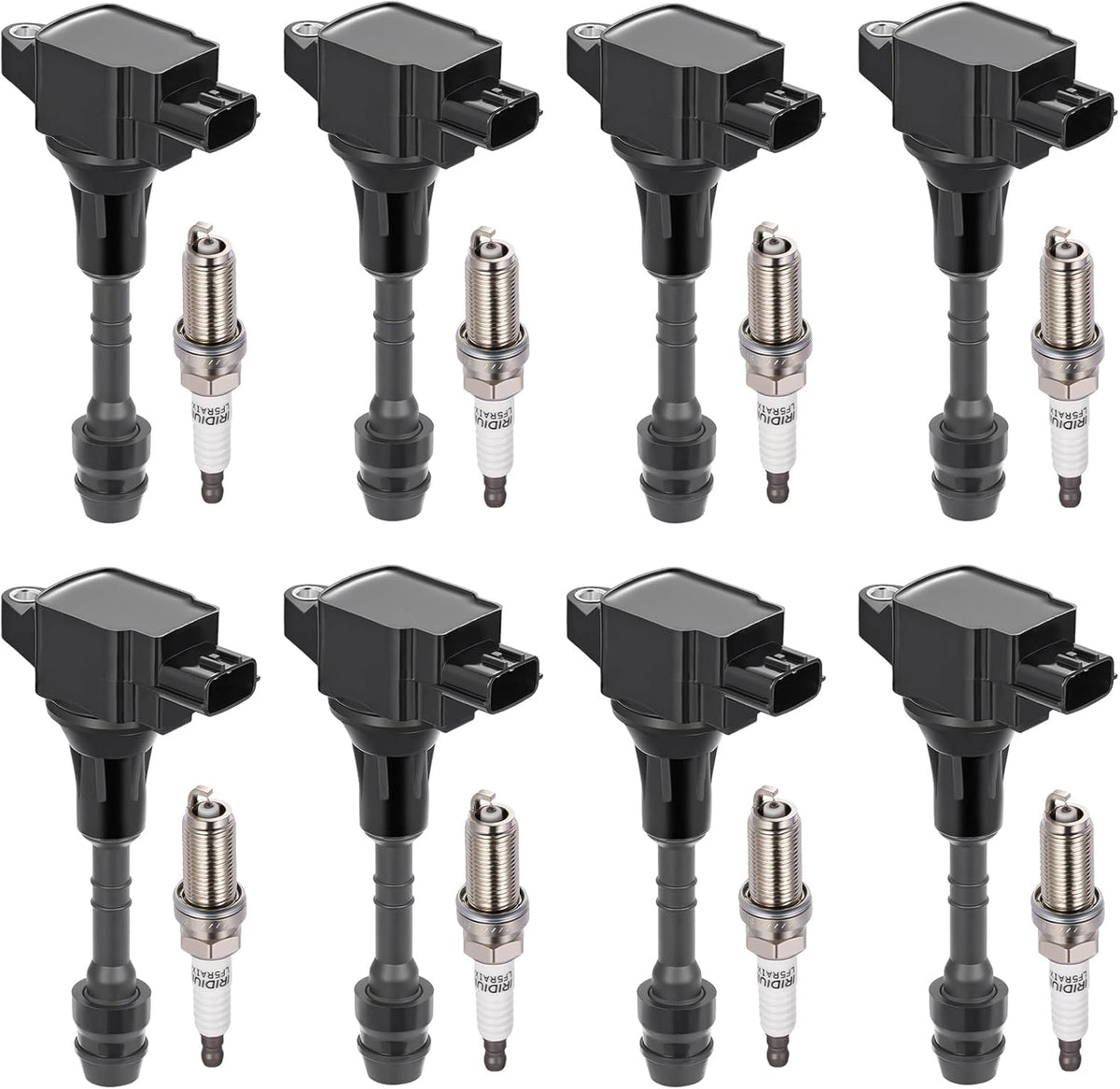 BDFHYK 8 Ignition Coil Pack UF551 and 8 Iridium Spark Plug 4505 Compatible with INFINITI 07-10 QX56,Compatible with Nissan 07-15 Armada, 12-15 NV2500 NV3500, 08-12 Pathfinder Coil for 5C1729 E1051
