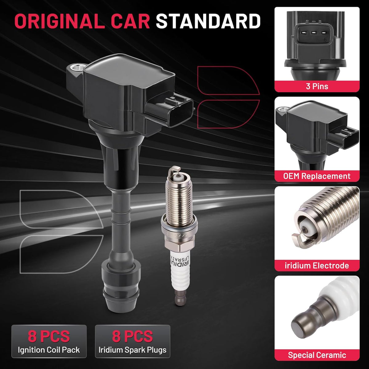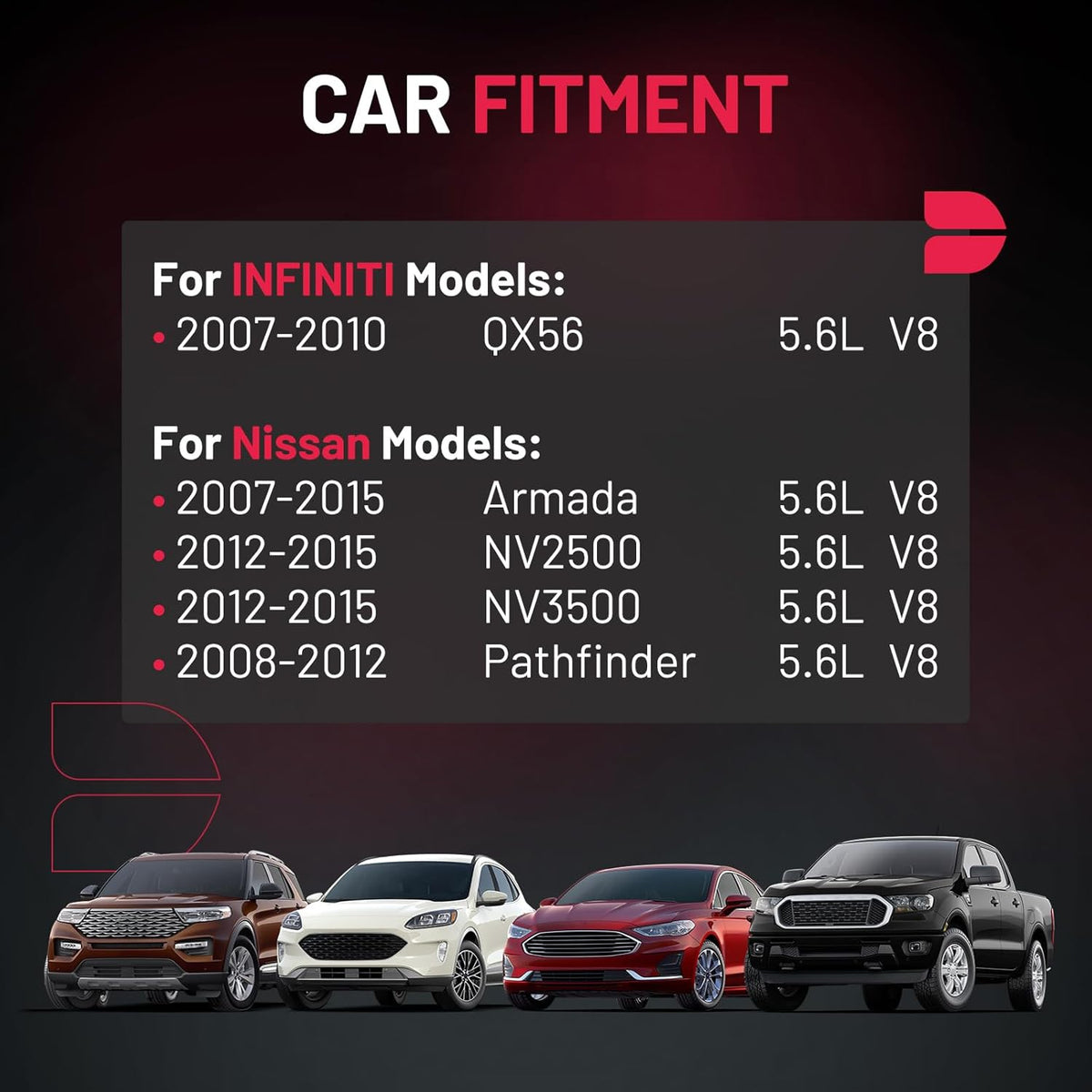【Basic Info:】Ignition Coil UF551 & Spark Plugs 4505 Compatible with INFINITI 2007-2010 QX56;Compatible with Nissan 2007-2015 Armada, 2012-2015 NV2500, 2012-2015 NV3500, 2008-2012 Pathfinder. Please check detail fitting info from pics or detail page. Please choose suitable coil pack and plugs with confidence.