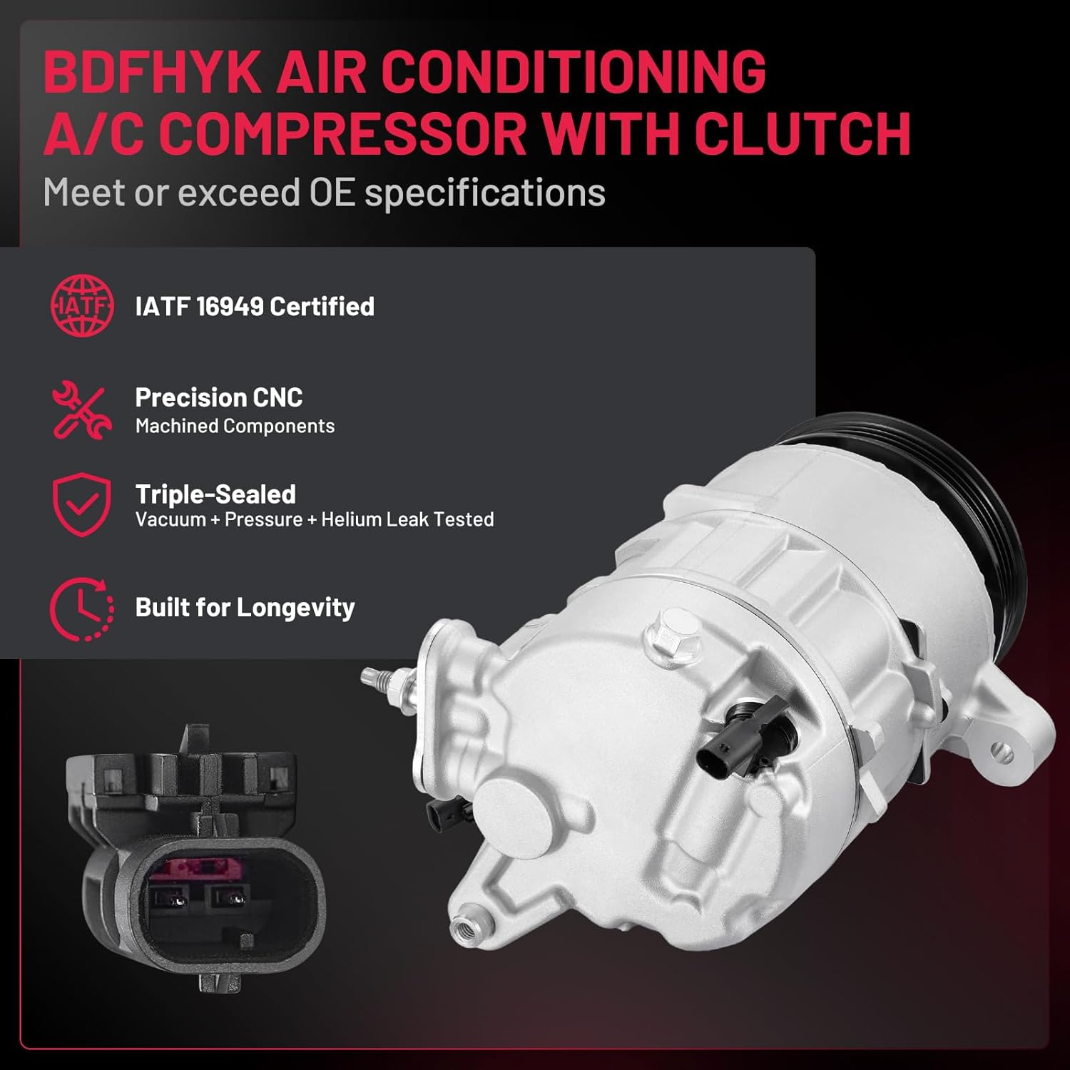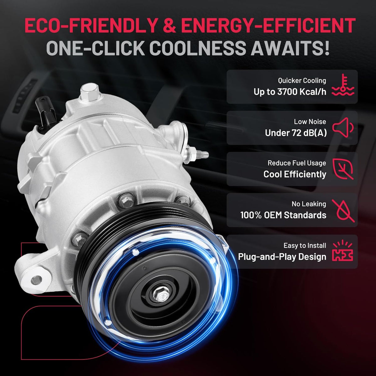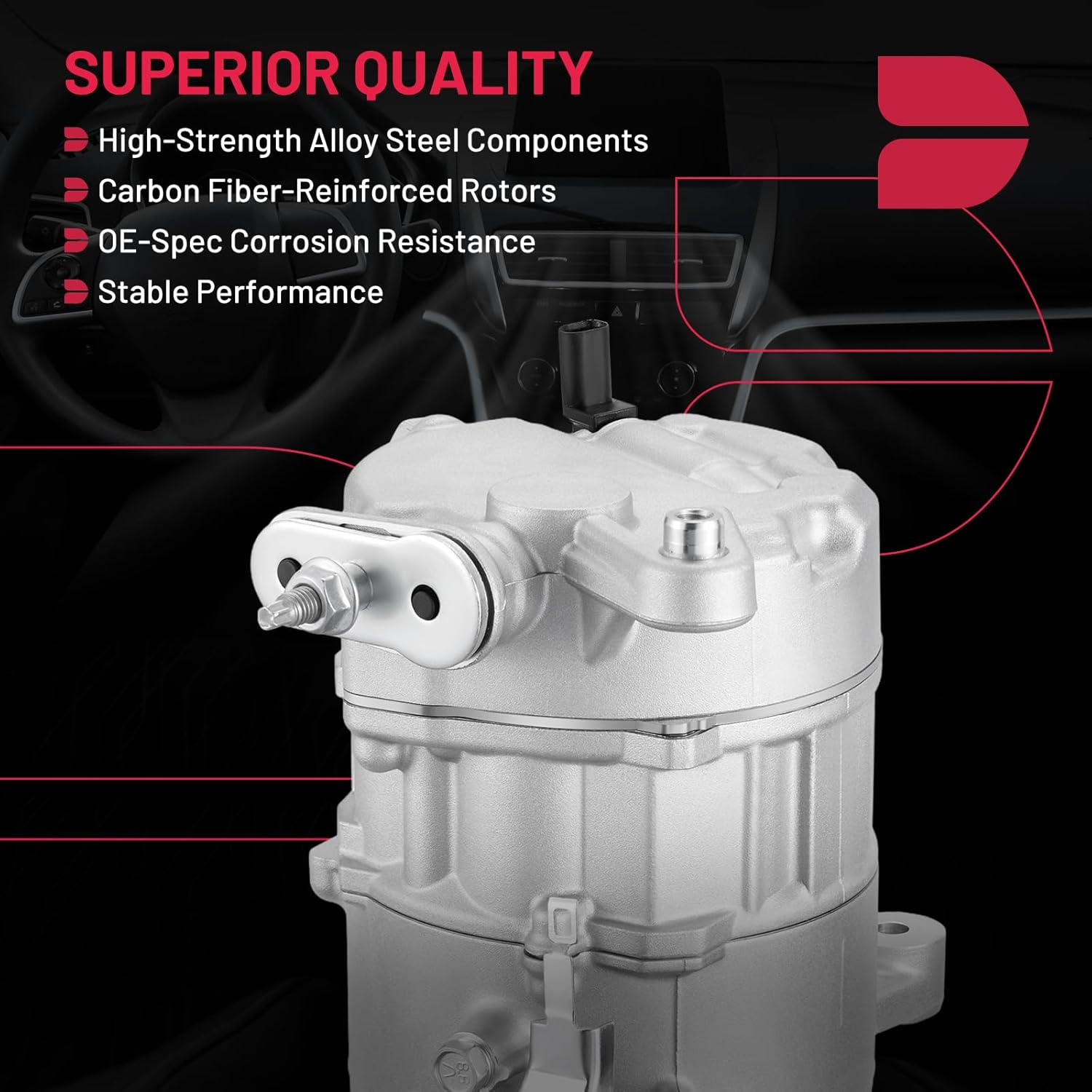Reliability & Performance - 100% Brand New | IATF 16949 Certified | 50,000-Mile Accelerated Life Tested | Triple-Sealed: Vacuum + Pressure + Helium Leak Tested (99.9% Leak-Free) | Precision CNC-Machined Components | Faster Cooling & Quieter vs. Standard Compressors | Built for Longevity
