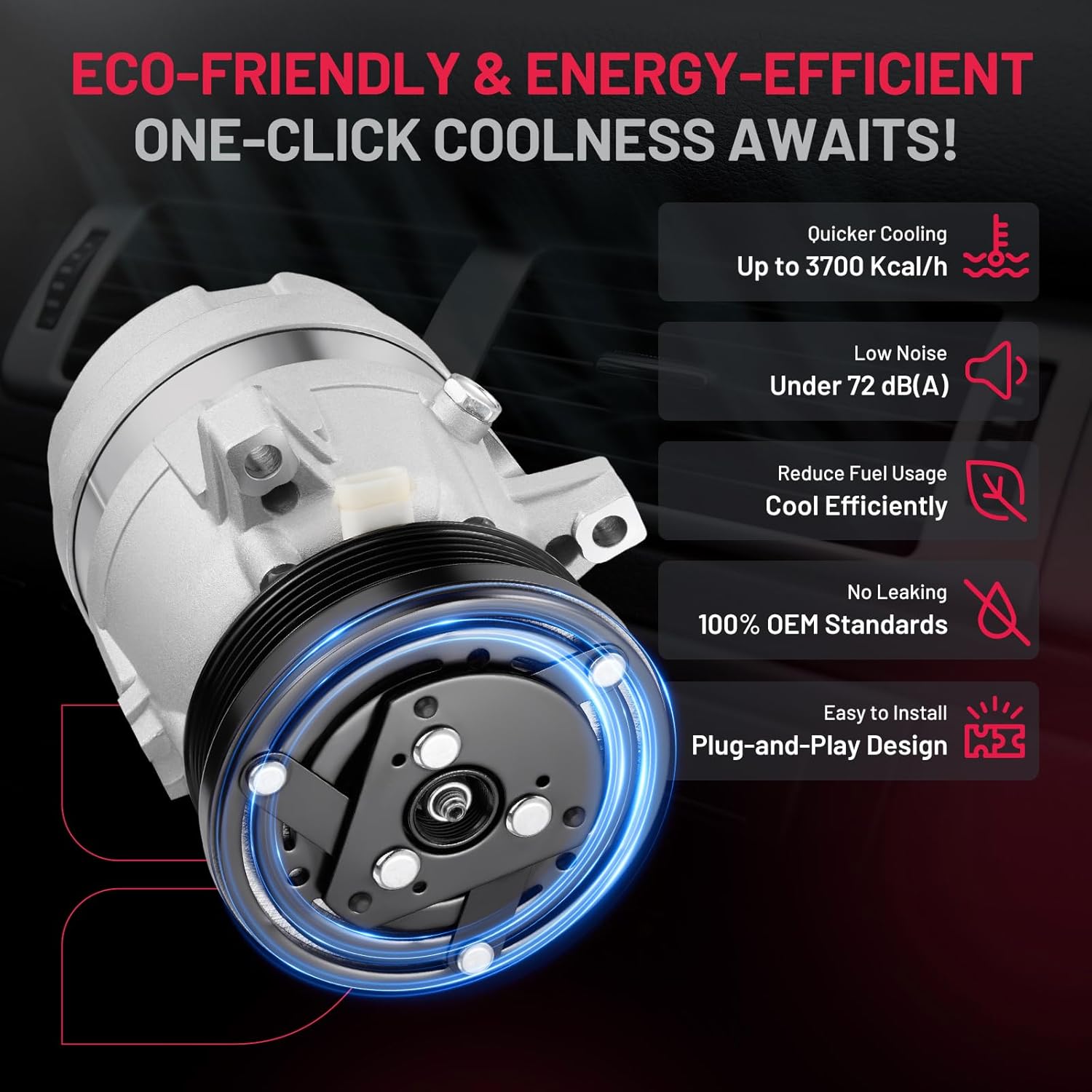 Reliability & Performance - 100% Brand New | IATF 16949 Certified | 50,000-Mile Accelerated Life Tested | Triple-Sealed: Vacuum + Pressure + Helium Leak Tested (99.9% Leak-Free) | Precision CNC-Machined Components | Faster Cooling & Quieter vs. Standard Compressors | Built for Longevity