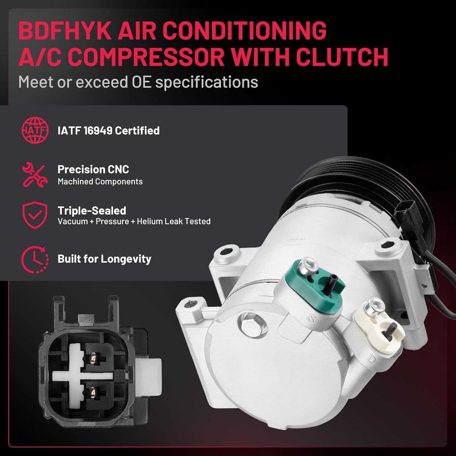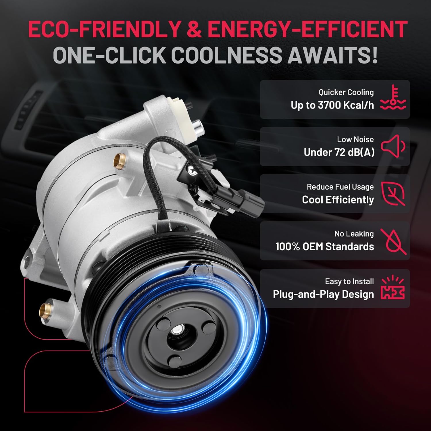 Reliability & Performance - 100% Brand New | IATF 16949 Certified | 50,000-Mile Accelerated Life Tested | Triple-Sealed: Vacuum + Pressure + Helium Leak Tested (99.9% Leak-Free) | Precision CNC-Machined Components | Faster Cooling & Quieter vs. Standard Compressors | Built for Longevity