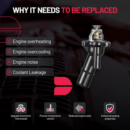 【Function】:Thermostat Housing Assembly is to regulate the temperature of the engine by controlling the flow of coolant through the radiator. The thermostat opens and closes based on the temperature of the engine, allowing coolant to flow through the radiator when the engine is too hot and restricting flow when the engine is too cold. This helps to maintain the engine at an optimal operating temperature, which improves fuel efficiency and prolongs the life of the engine.