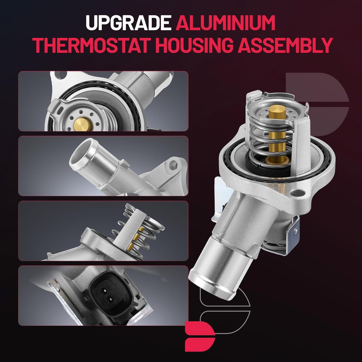 【High Quality Construction】:The upgraded aluminum coolant thermostat housing assembly is made of durable aluminum alloy, which provides greater durability and strength than traditional plastic housings, reducing the risk of cracking.