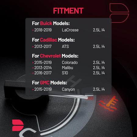 【Fitment information】:Thermostat Housing Assembly Compatible with Buick 2018-2019 LaCrosse; Compatible with Cadillac 2013-2017 ATS; Compatible with Chevy 2015-2019 Colorado, 2016-2017 S10, 2013-2014 Malibu; Compatible with GMC 2015-2019 Canyon. Engine fitment:2.5L L4.