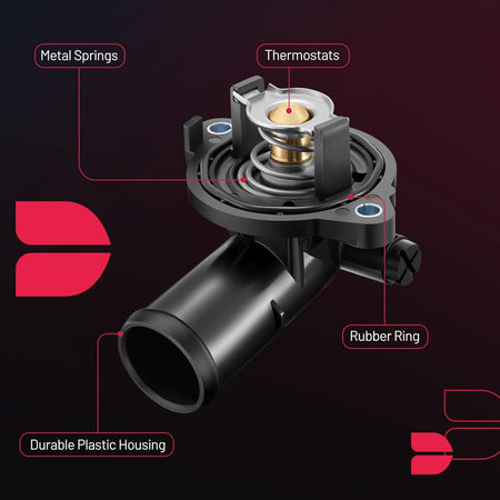 【Function】:Thermostat Housing Assembly is to regulate the temperature of the engine by controlling the flow of coolant through the radiator. The thermostat opens and closes based on the temperature of the engine, allowing coolant to flow through the radiator when the engine is too hot and restricting flow when the engine is too cold. This helps to maintain the engine at an optimal operating temperature, which improves fuel efficiency and prolongs the life of the engine.