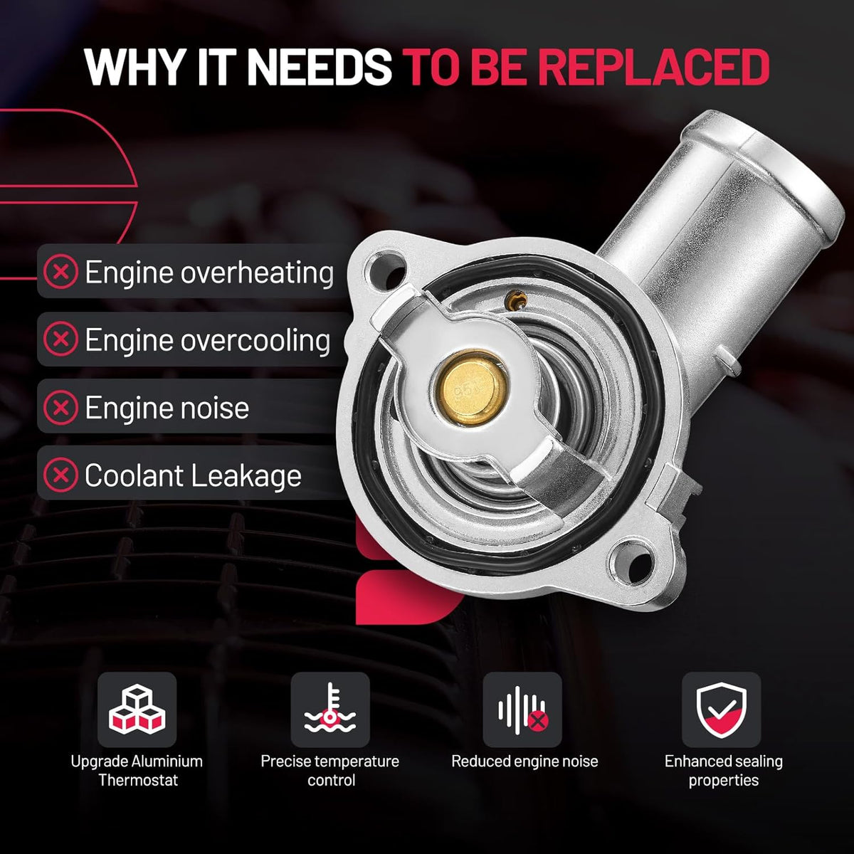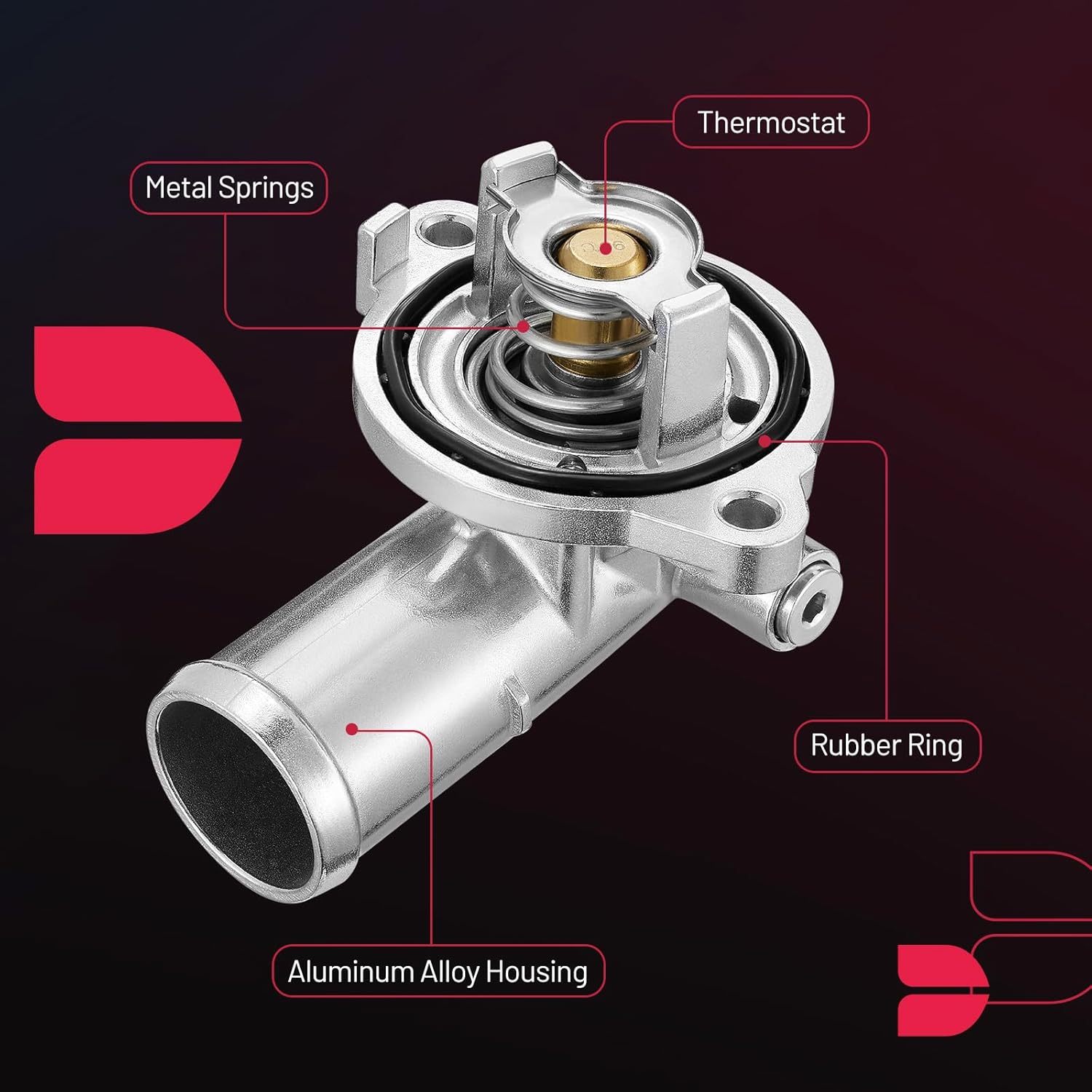【High Quality Construction】:The upgraded aluminum coolant thermostat housing assembly is made of durable aluminum alloy, which provides greater durability and strength than traditional plastic housings, reducing the risk of cracking.