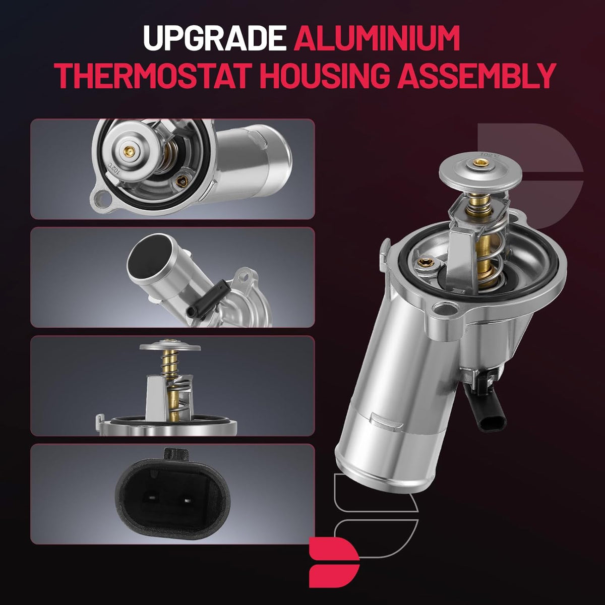 【High Quality Construction】:The upgraded aluminum coolant thermostat housing assembly is made of durable aluminum alloy, which provides greater durability and strength than traditional plastic housings, reducing the risk of cracking.