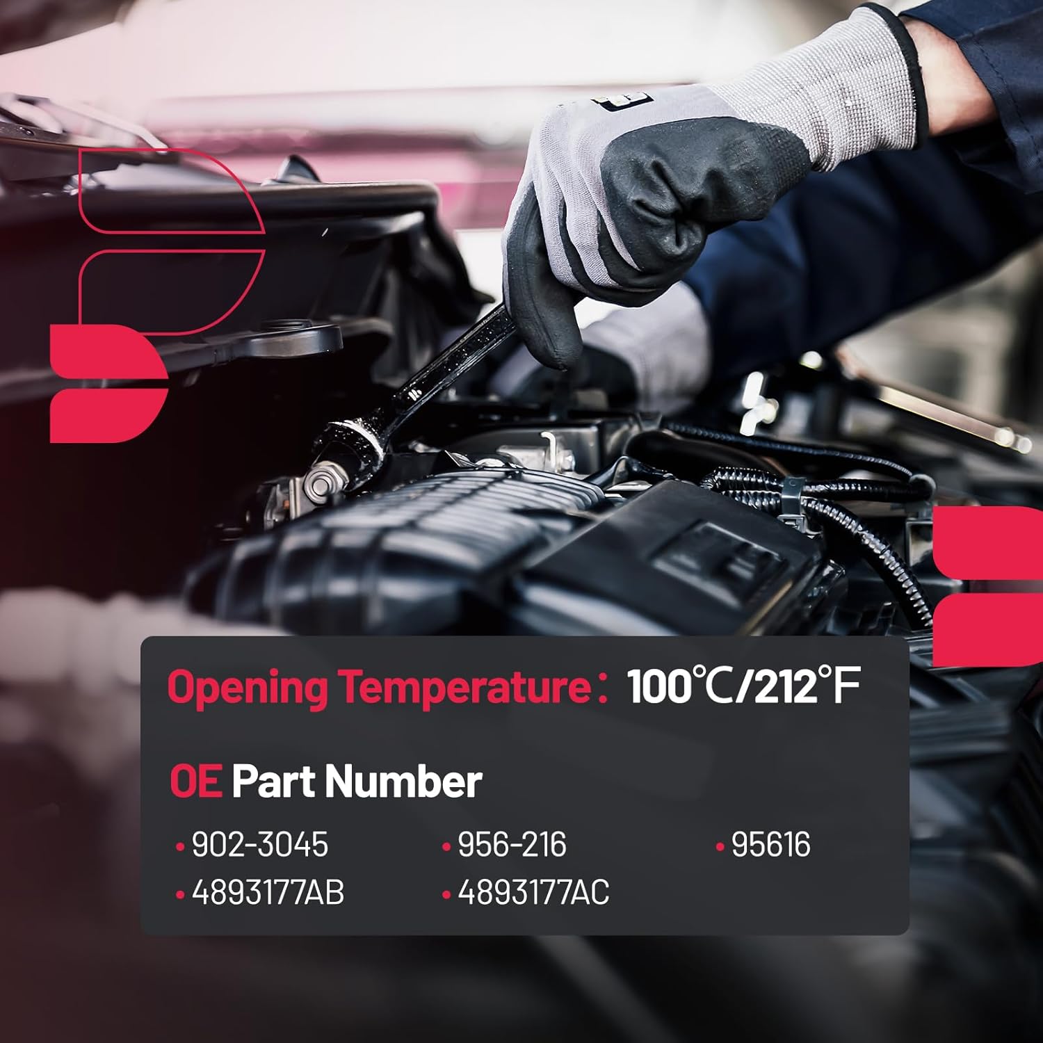 【OE Part Numbers】:Engine Coolant Thermostat compatible to 902-3045 956-216 4893177AB 4893177AC 4893177AD 95616.Please confirm fitment by OE number or detailed model and sub-model information.