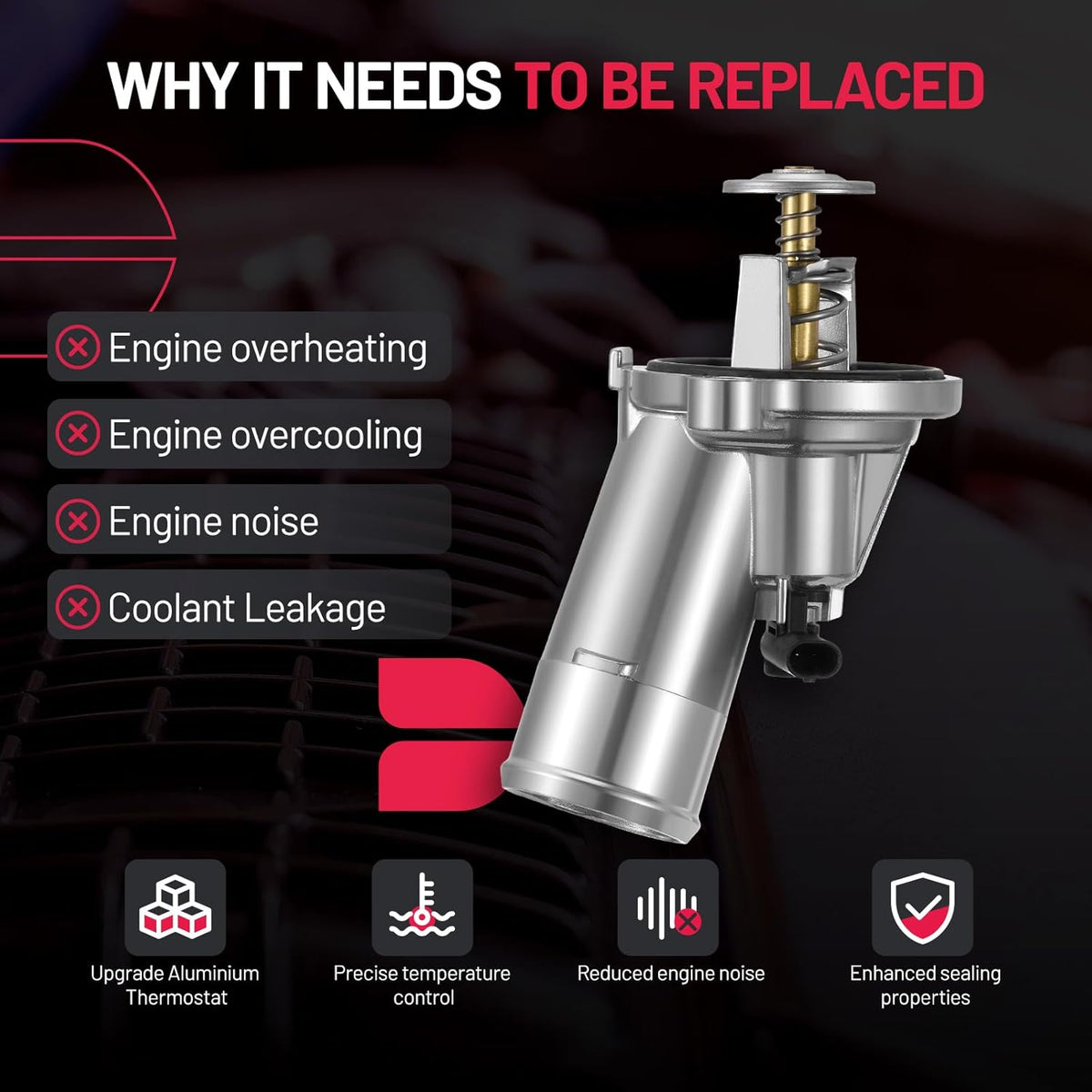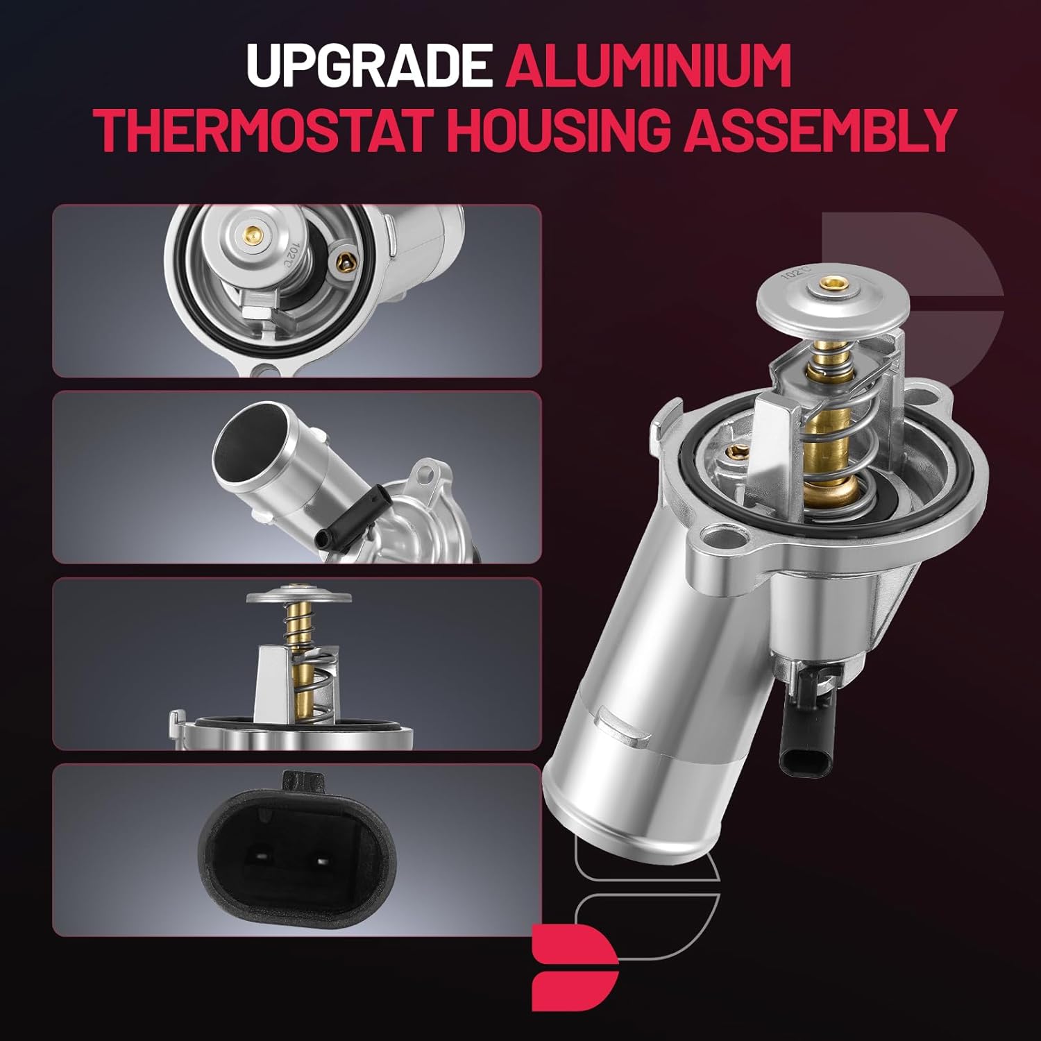 【High Quality Construction】:The upgraded aluminum coolant thermostat housing assembly is made of durable aluminum alloy, which provides greater durability and strength than traditional plastic housings, reducing the risk of cracking.