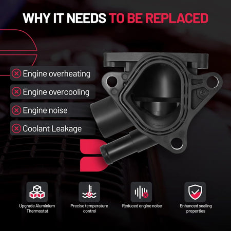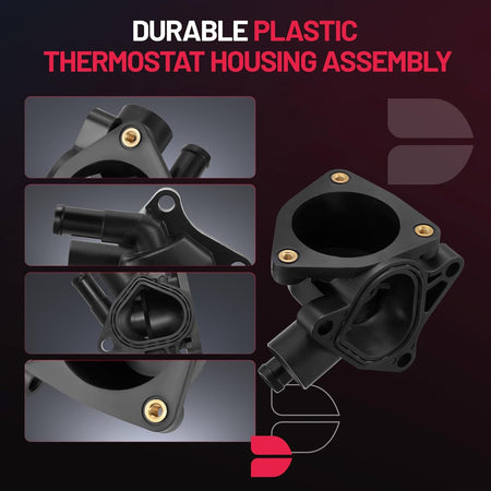 【Function】:Thermostat Housing Assembly is to regulate the temperature of the engine by controlling the flow of coolant through the radiator. The thermostat opens and closes based on the temperature of the engine, allowing coolant to flow through the radiator when the engine is too hot and restricting flow when the engine is too cold. This helps to maintain the engine at an optimal operating temperature, which improves fuel efficiency and prolongs the life of the engine.
