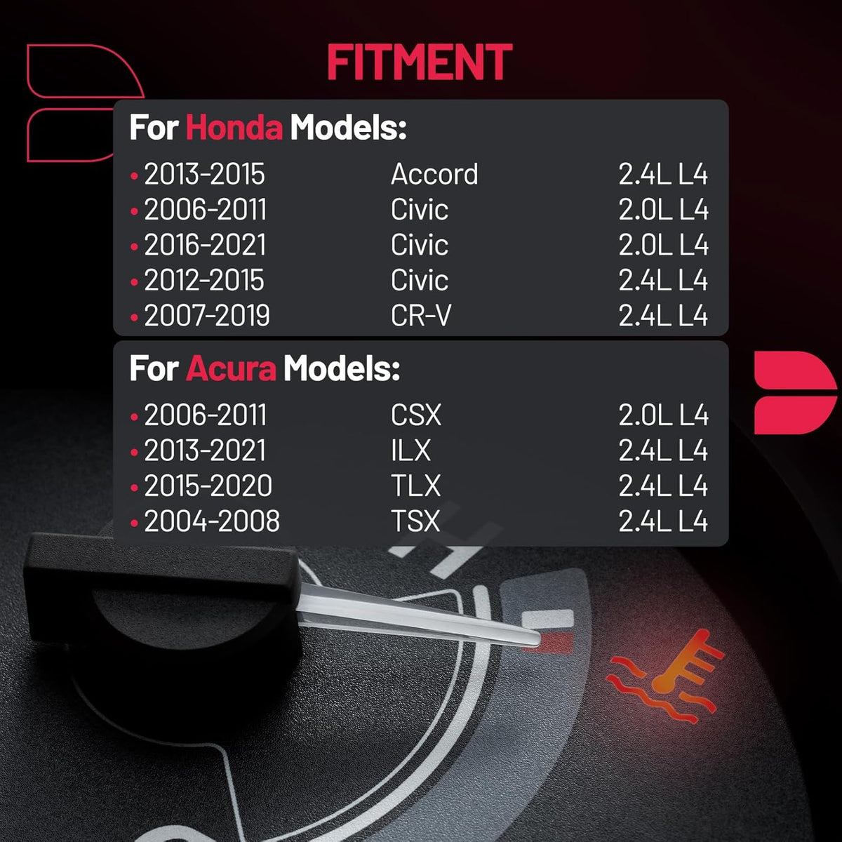 【Fitment information】:Thermostat Housing Assembly Compatible with Compatible with Honda 2013-2015 Accord, 2006-2021 Civic, 2007-2019 CR-V; Compatible with Acura 2006-2011 CSX, 2013-2021 ILX, 2015-2020 TLX, 2004-2008 TSX. Engine fitment:2.0L 2.4L L4.