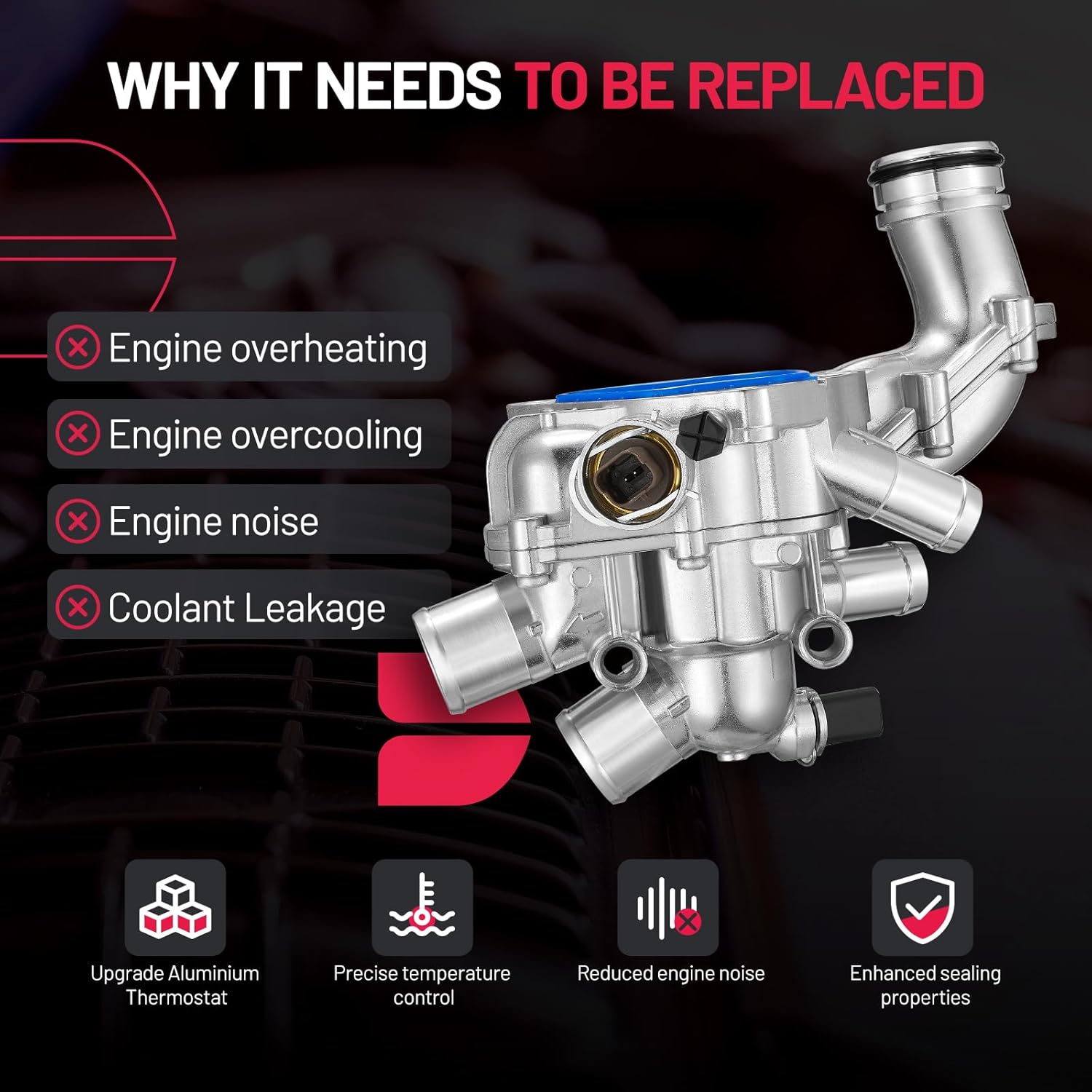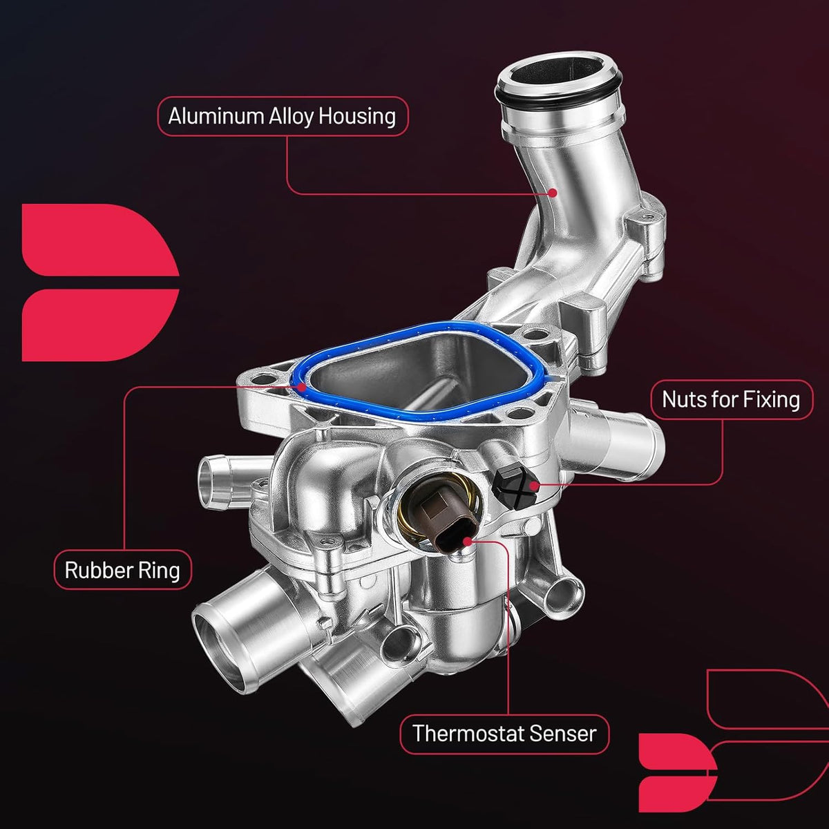 【High Quality Construction】:The upgraded aluminum coolant thermostat housing assembly is made of durable aluminum alloy, which provides greater durability and strength than traditional plastic housings, reducing the risk of cracking.