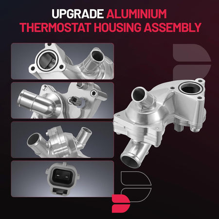 【High Quality Construction】:The upgraded aluminum coolant thermostat housing assembly is made of durable aluminum alloy, which provides greater durability and strength than traditional plastic housings, reducing the risk of cracking.