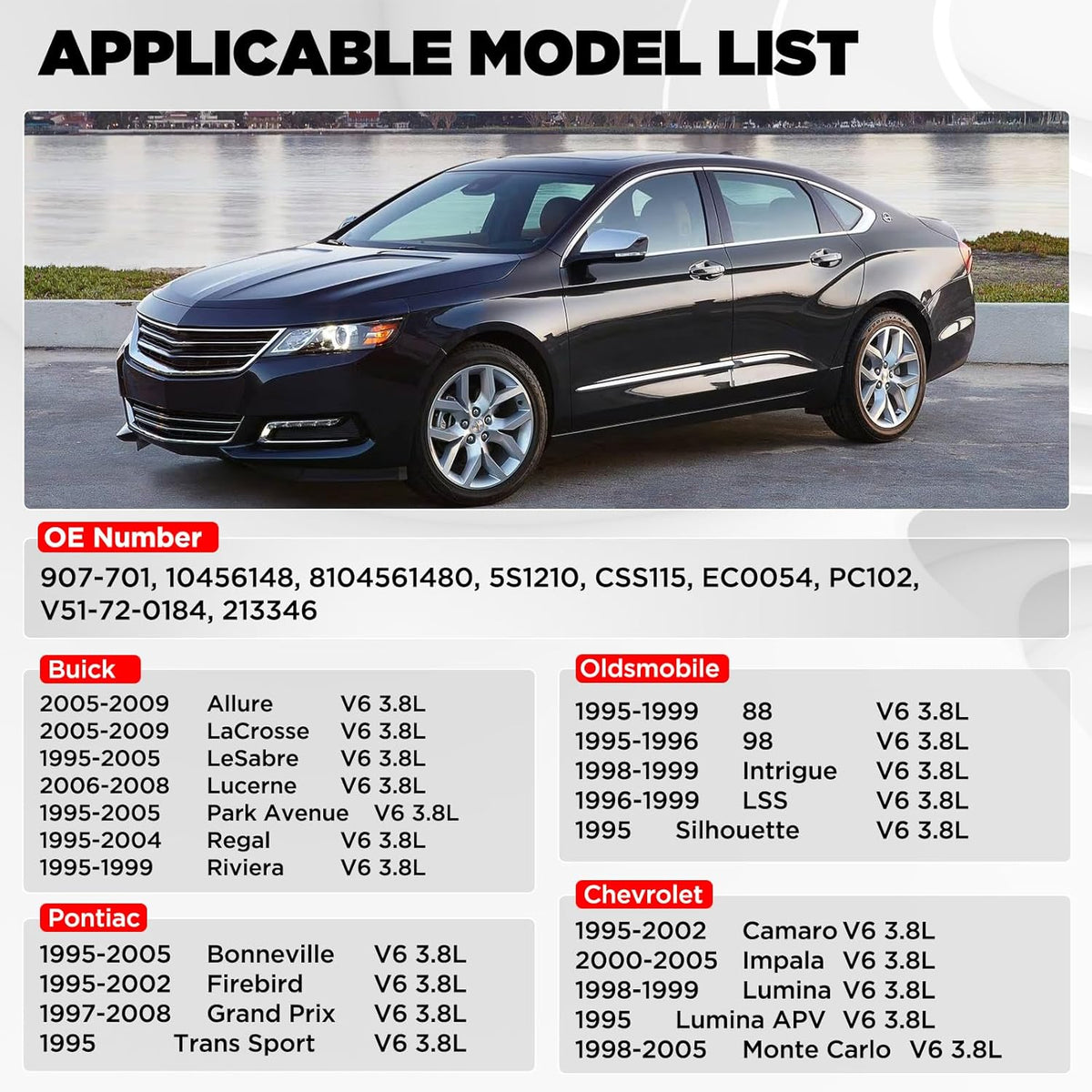 Compatible Models: for BUICK ALLURE 2005-2009, LACROSSE 2005-2009, LESABRE 1995-2005, LUCERNE 2006-2008, PARK AVENUE 1995-2005, REGAL 1995-2004, RIVIERA 1995-1999 / for PONTIAC BONNEVILLE 1995-2005, FIREBIRD 1995-2002, GRAND PRIX 1997-2008