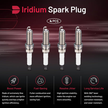 BDFHYK 91215 Double Iridium Spark Plugs Compatible with Nissan 2011-2017 Juke, 2016 Murano, 2014-2015 Pathfinder.Compatible with INFINITI 2014-2017 QX60 Replacement for XP5683 DILKAR7C9H Set of 4