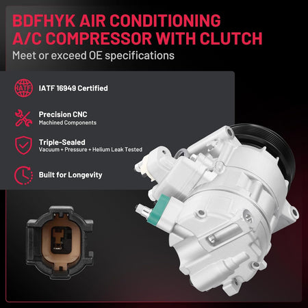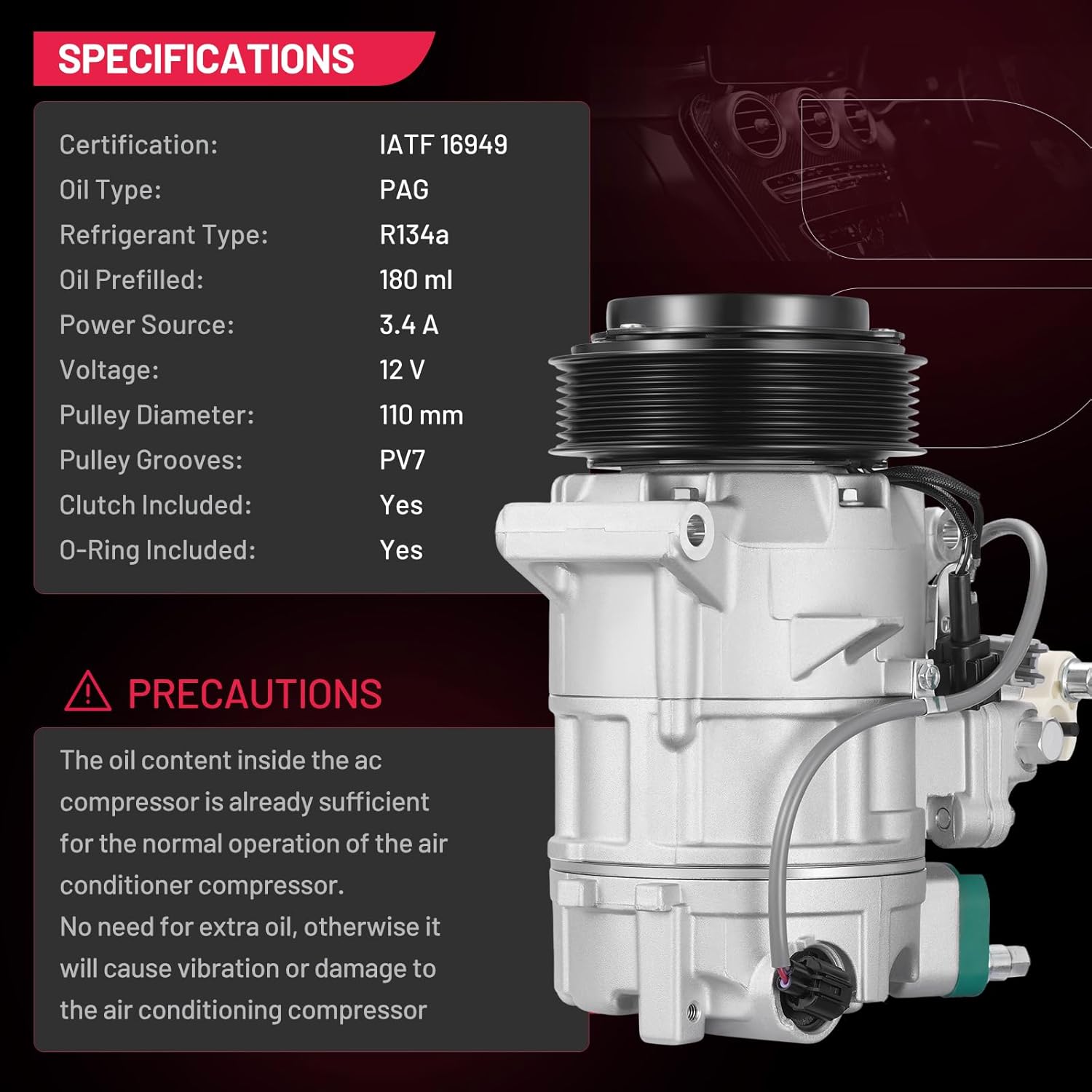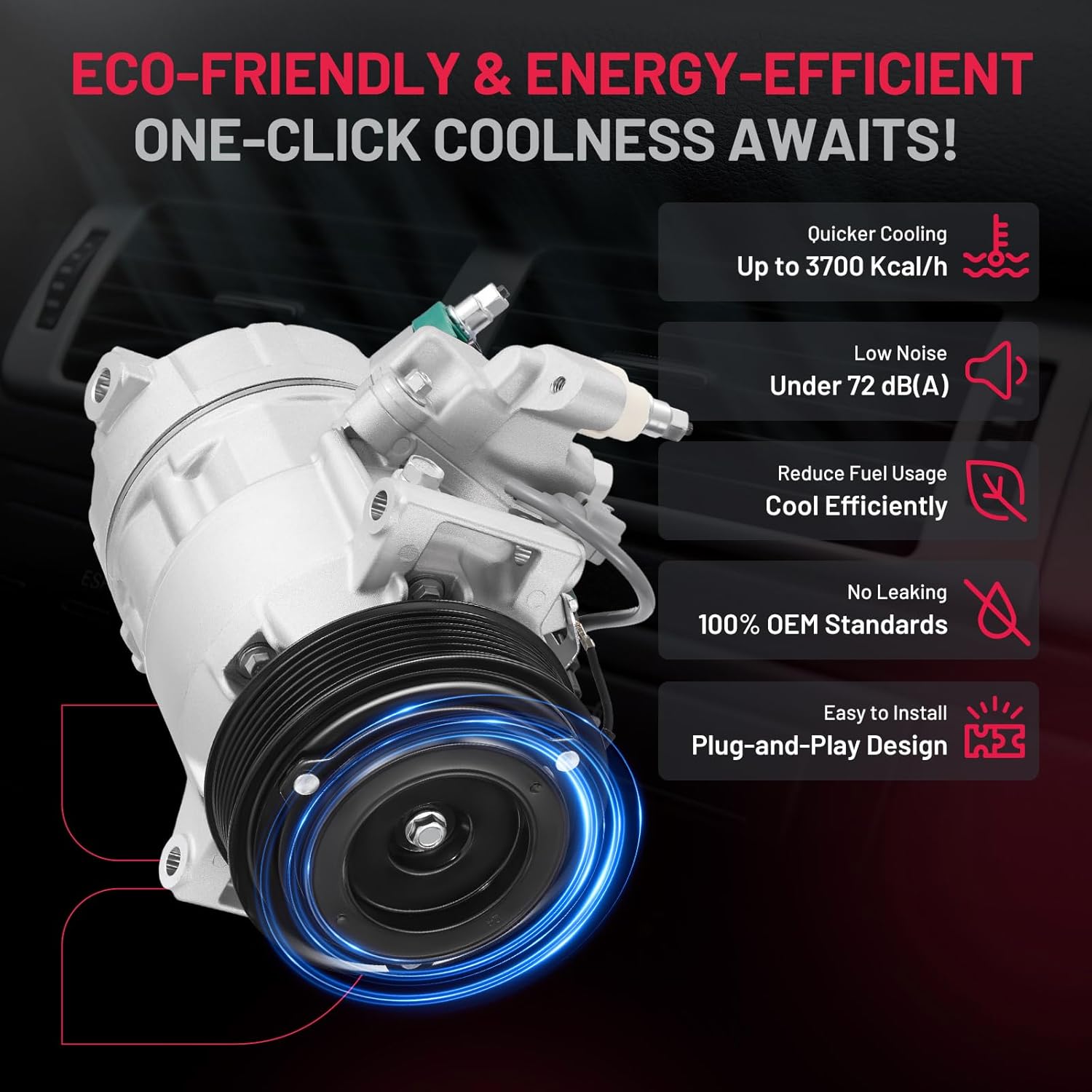 Reliability & Performance - 100% Brand New | IATF 16949 Certified | 50,000-Mile Accelerated Life Tested | Triple-Sealed: Vacuum + Pressure + Helium Leak Tested (99.9% Leak-Free) | Precision CNC-Machined Components | Faster Cooling & Quieter vs. Standard Compressors | Built for Longevity