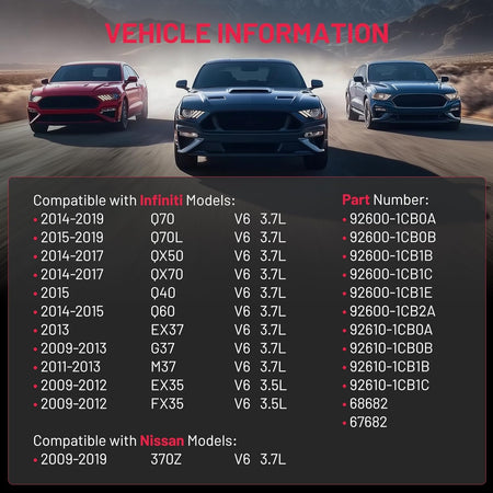Part Number - Replace# 92600-1CB0A 92600-1CB0B 92600-1CB1B 92600-1CB1C 92600-1CB1E 92600-1CB2A 92610-1CB0A 92610-1CB0B 92610-1CB1B 92610-1CB1C 68682 67682. NOTE: Please use "amazon confrmed fit" tool to enter your year, make, and model to avoid mismatch with the model can not be used