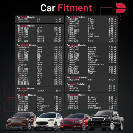 【Compatibility Information】:Spark Plug 93501 Compatible with Acura ILX TLX; Compatible with Honda Accord Civic CR-V Fit HR-V; Compatible with INFINITI EX35 FX35 FX50 G25 G35 JX35 M35 M35h M56 Q50 Q70 Q70L QX56 QX60 QX70 QX80; Compatible with Nissan 350Z Altima Armada Frontier Maxima Murano NV2500 NV3500 Pathfinder Quest TITAN XD; Compatible with Toyota Corolla Matrix Prius Prius Plug-In Prius V Yaris Yaris iA.Please see images or details page for complete Compatibility information.