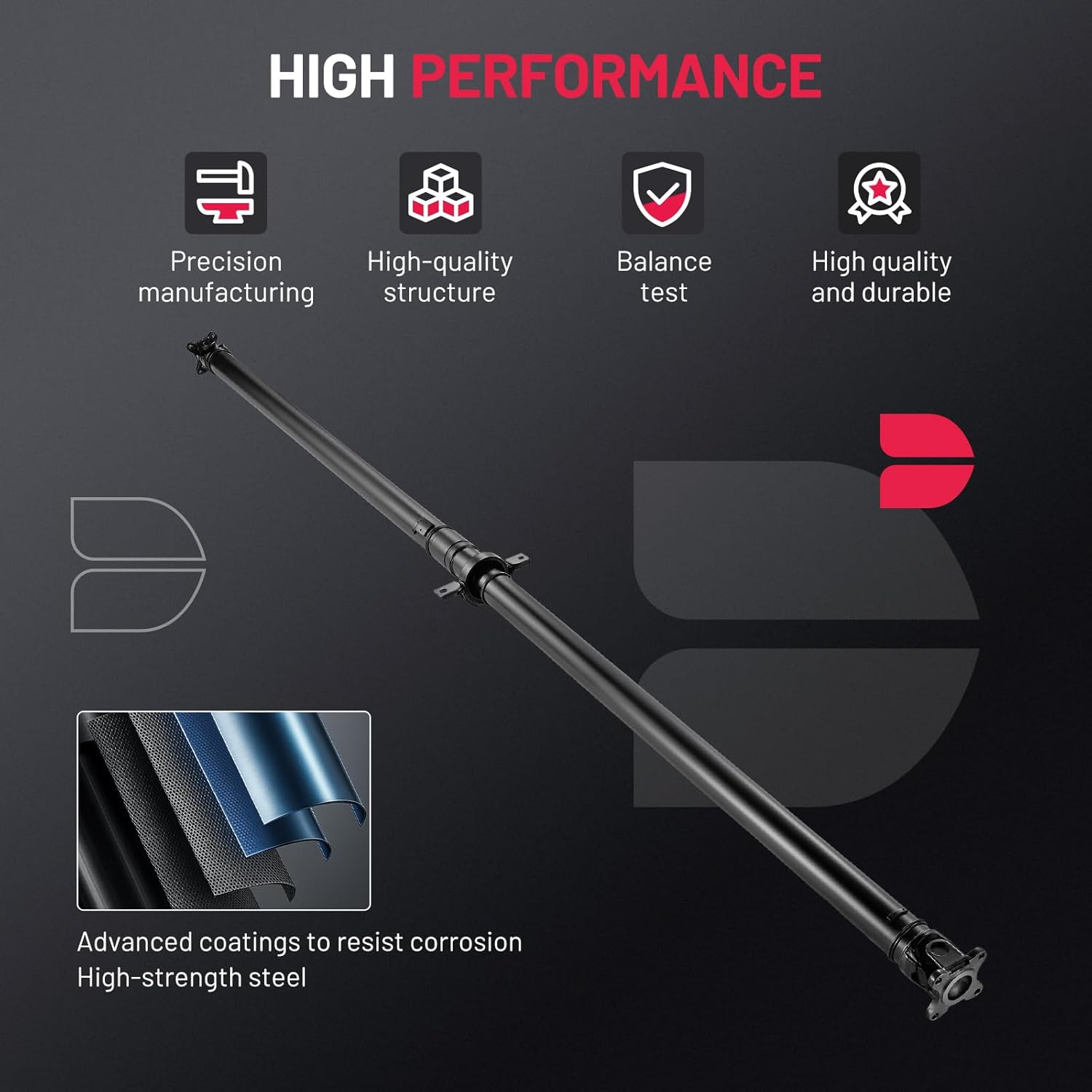 [High-Quality Materials] Made of precision forged steel and high-strength alloy joints, it can cope with dynamic offset and torque transmission requirements under complex road conditions. Each drive shaft is dynamically balanced before leaving the factory, and its performance is reliable.