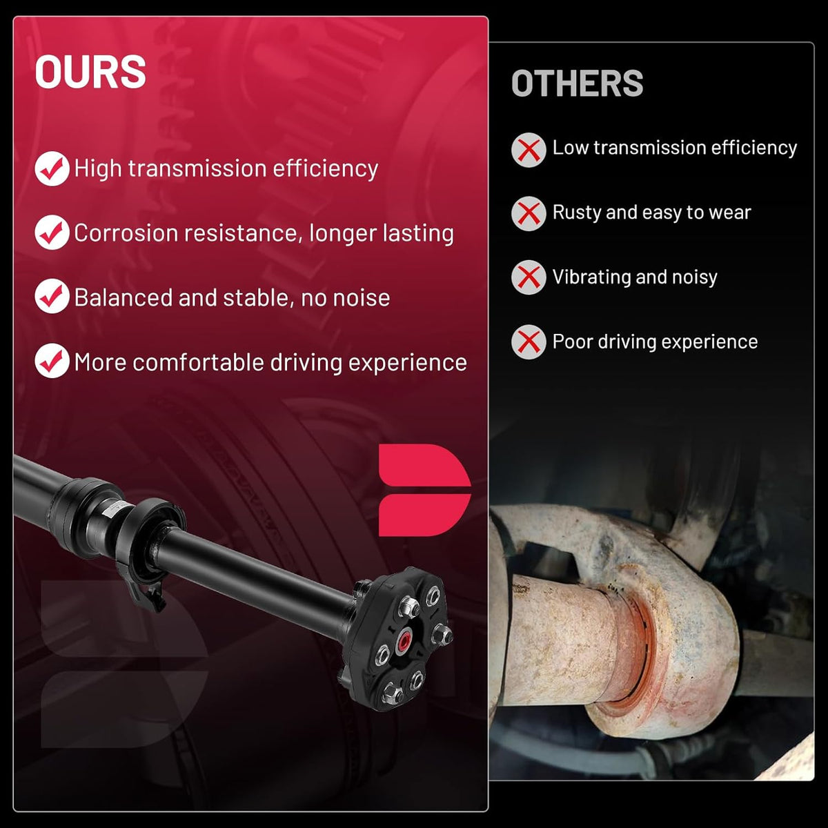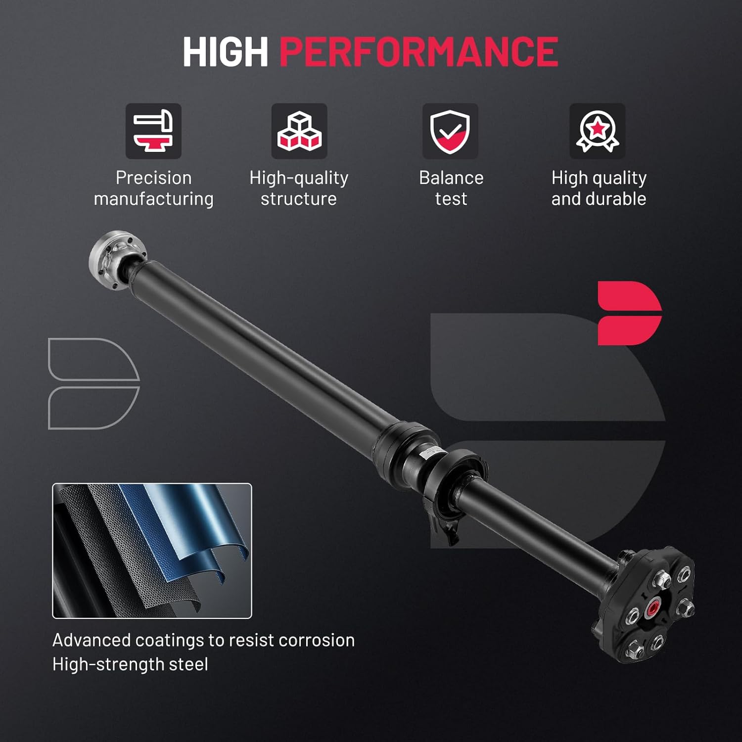 [High-Quality Materials] Made of precision forged steel and high-strength alloy joints, it can cope with dynamic offset and torque transmission requirements under complex road conditions. Each drive shaft is dynamically balanced before leaving the factory, and its performance is reliable.