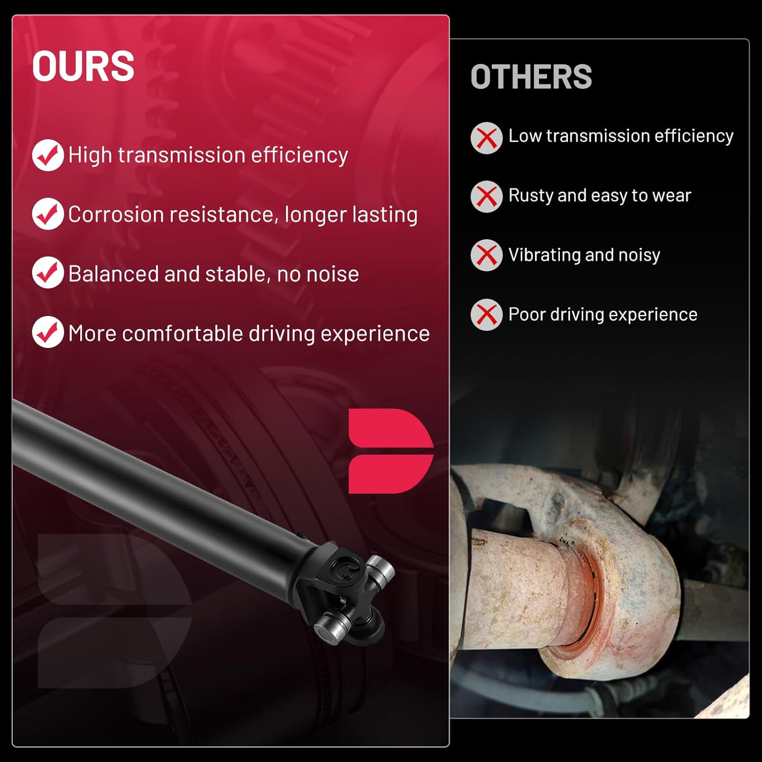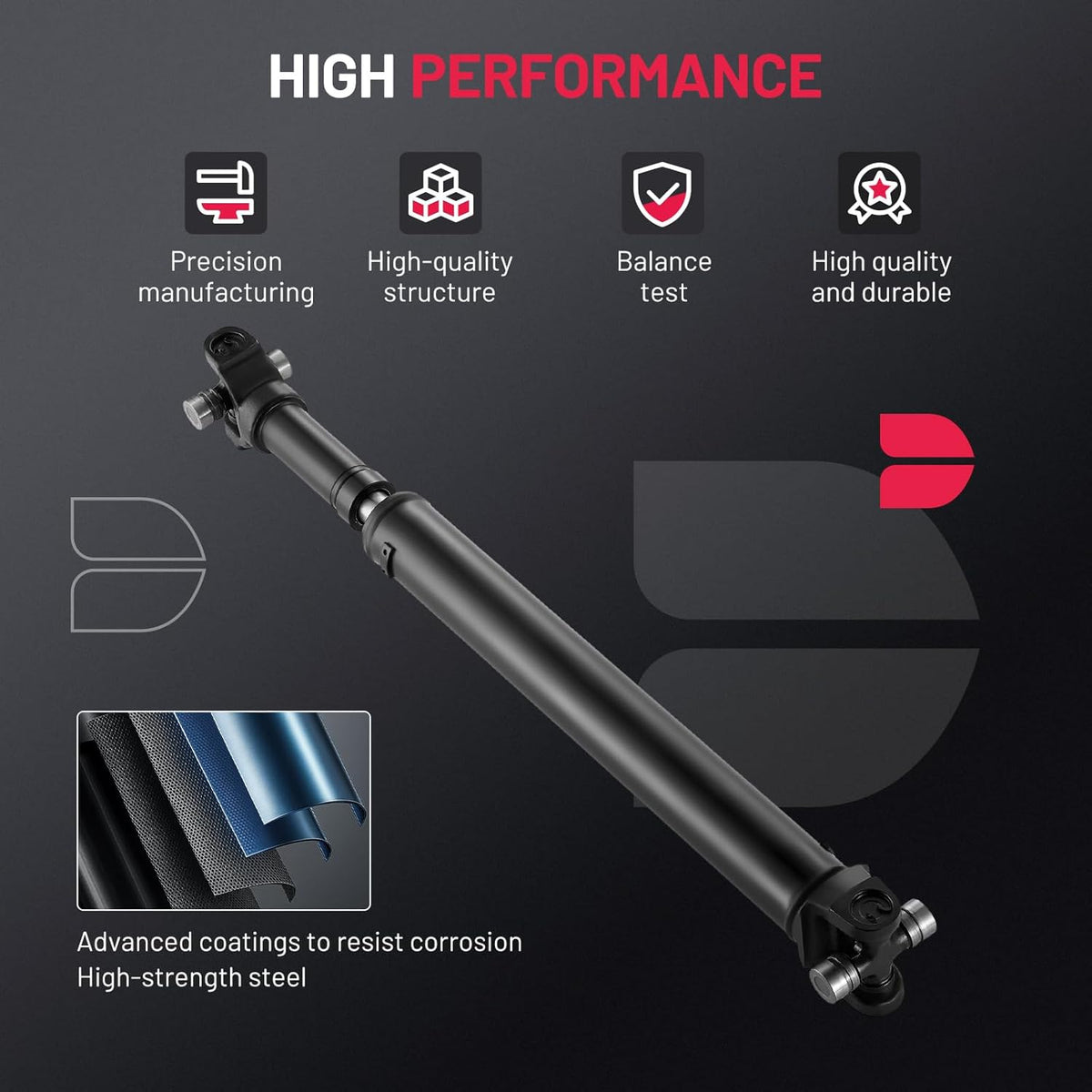 [High-Quality Materials] Made of precision forged steel and high-strength alloy joints, it can cope with dynamic offset and torque transmission requirements under complex road conditions. Each drive shaft is dynamically balanced before leaving the factory, and its performance is reliable.
