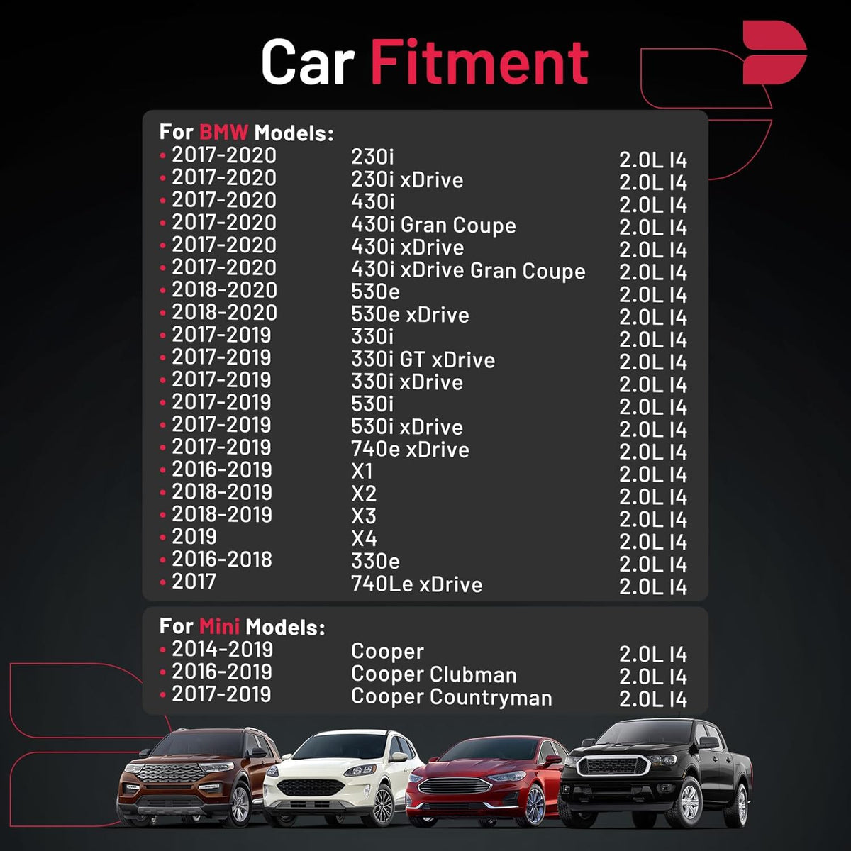 【Compatibility Information】:Spark Plug 94201 Compatible with BMW 2016-2018 330e, 2016-2019 X1, 2017 740Le xDrive, 2017-2019 330i 330i GT xDrive 330i xDrive 530i 530i xDrive 740e xDrive, 2017-2020 230i 230i xDrive 430i 430i Gran Coupe 430i xDrive 430i xDrive Gran Coupe, 2018-2019 X2 X3, 2018-2020 530e 530e xDrive, 2019 X4; Compatible with Mini 2014-2019 Cooper, 2016-2019 Cooper Clubman, 2017-2019 Cooper Countryman.Please see images or details page for complete Compatibility information.