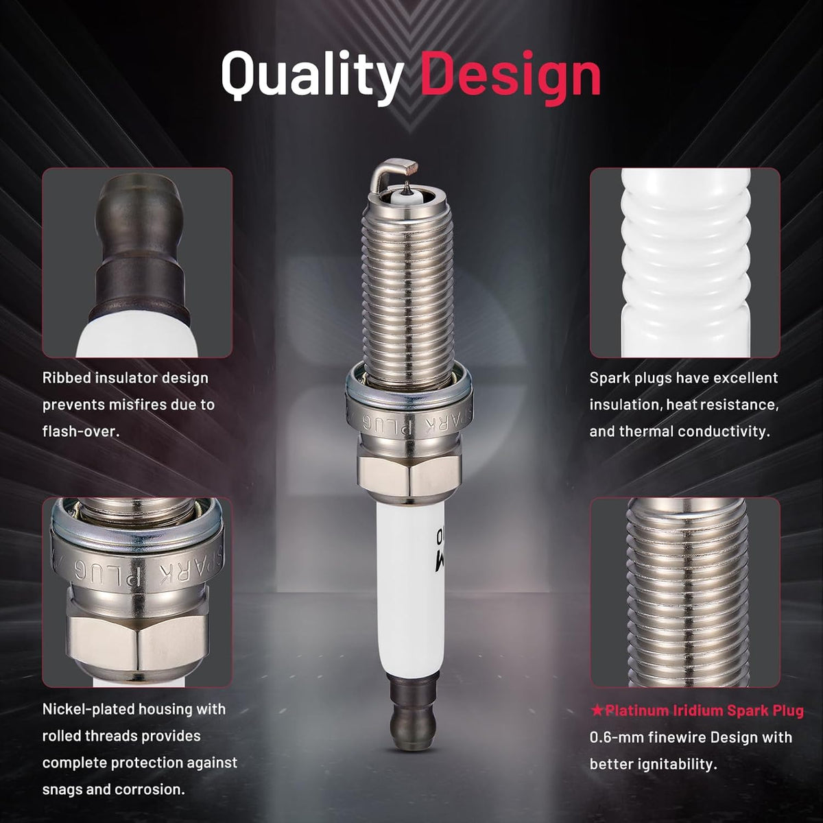 【Relive Performance】:OE standard performance and durability TS16949 certified manufacturer. All center electrodes are made from extremely fine iridium electrodes for good ignition performance. Insulators are made from isostatic ceramics for high density, strength, and good insulation.
