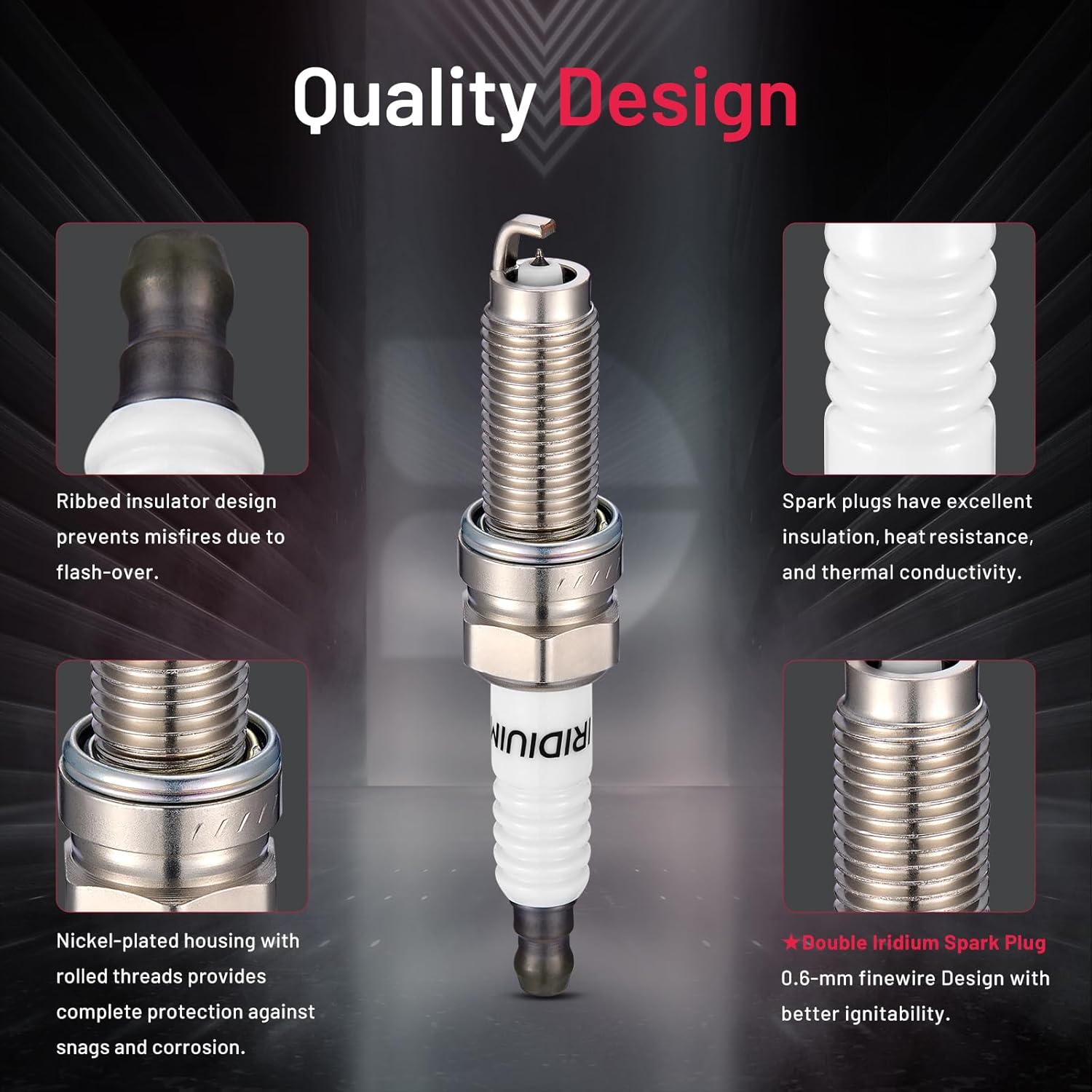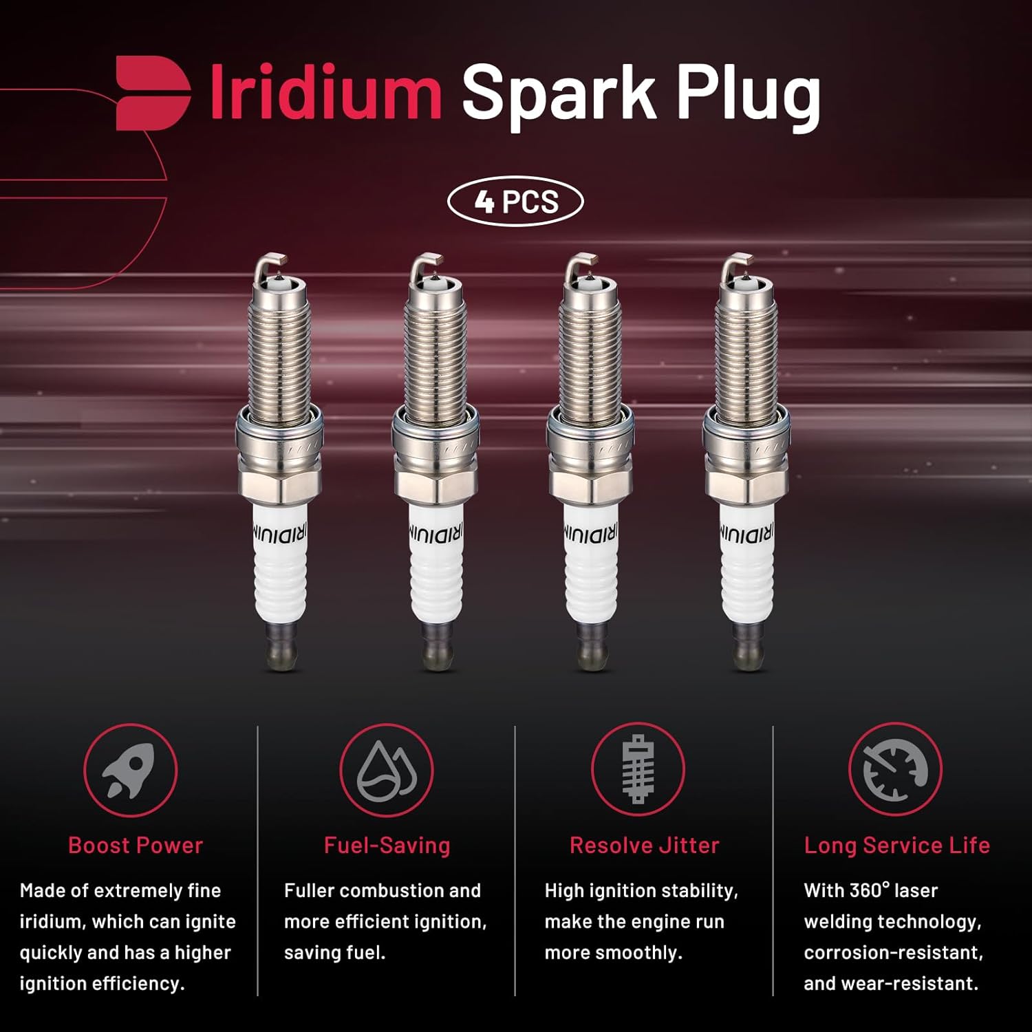 BDFHYK 95264 Double Iridium Spark Plugs Compatible with Mitsubishi Outlander 2014 2015 2016 2017 2018 2019 2020 2.4L L4 Replacement for DILKR6D11G 1822A088 Set of 4