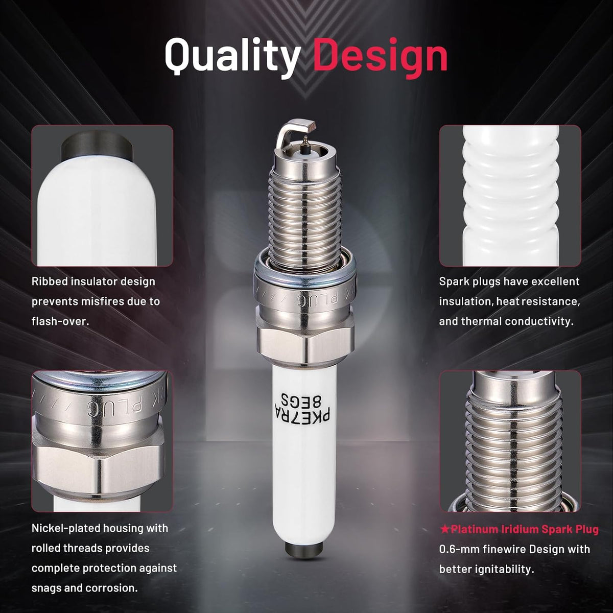 BDFHYK 95463 Platinum Iridium Spark Plugs Compatible with Audi 2016-2018 A3 Sportback e-tron,Compatible with Volkswagen 2013-2016 Jetta FHEV, 2016-2018 Jetta GAS Replacement for PKER7A8EGS Set of 4