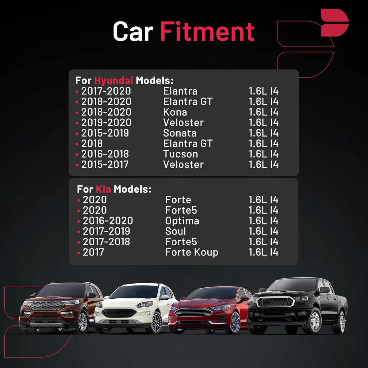 【Compatibility Information】:Spark Plug 97080 Compatible with Hyundai 2017-2020 Elantra, 2018-2020 Elantra GT, 2018-2020 Kona, 2015-2019 Sonata, 2016-2018 Tucson, 2015-2017 Veloster, 2019-2020 Veloster; Compatible with Kia 2020 Forte, 2017 Forte Koup, 2017-2018 Forte5, 2020 Forte5, 2016-2020 Optima, 2017-2019 Soul.Please see images or details page for complete Compatibility information.