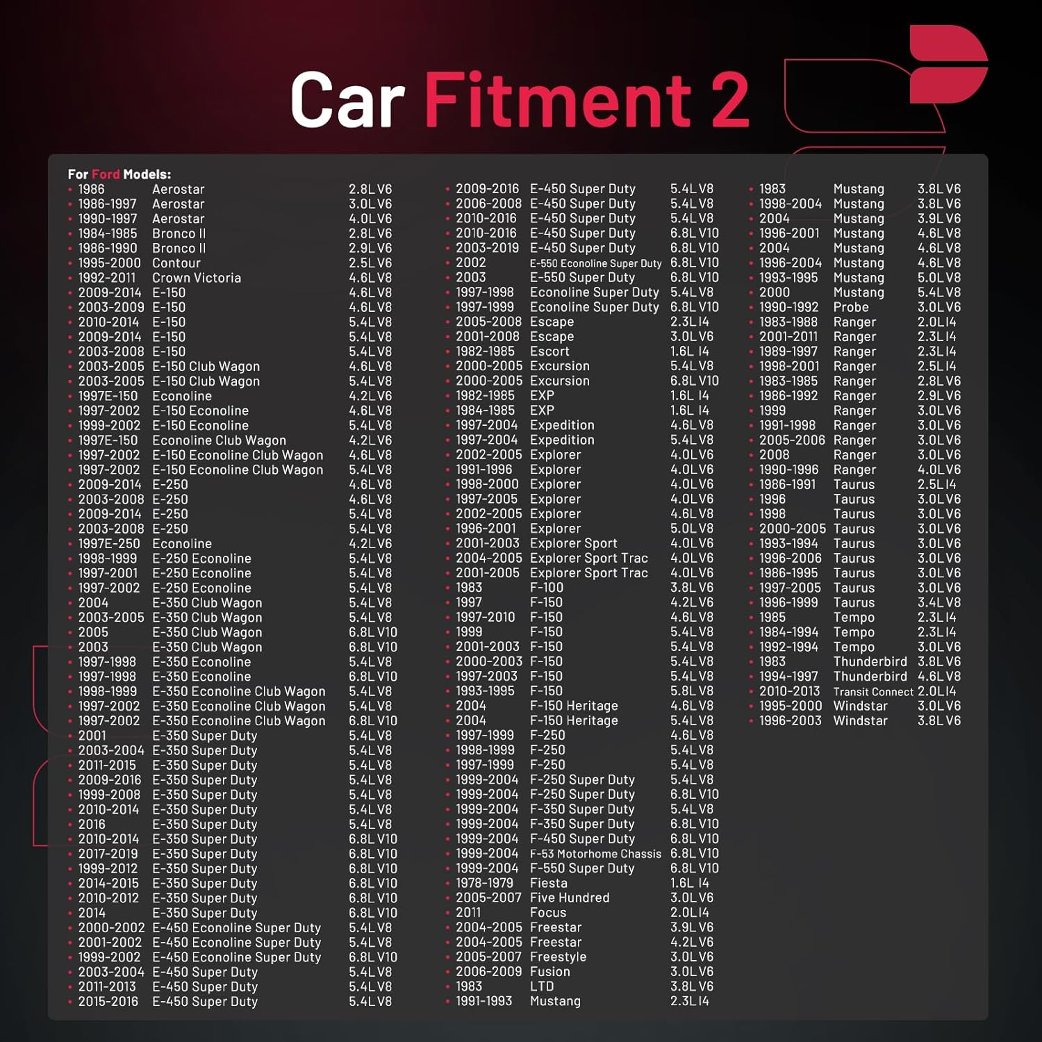 【Compatibility Information】:Spark Plug 97287 Compatible with Buick 1995-1998 Skylark; Compatible with Chevrolet 1995-2002 Cavalier,1997-1999 Malibu; Compatible with Eagle 1988-1989 Medallion;Compatible with Ford 1983-2011 Ranger,2005-2008 Escape,1982-1985 Escort EXP,1984-1994 Tempo; Compatible with Mercury 2005-2008 Mariner; Compatible with Pontiac 1995-2002 Sunfire.Please see images or details page for complete Compatibility information