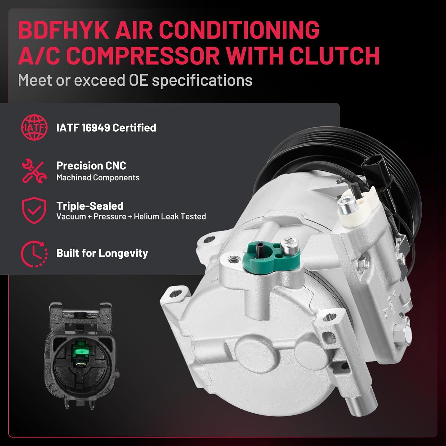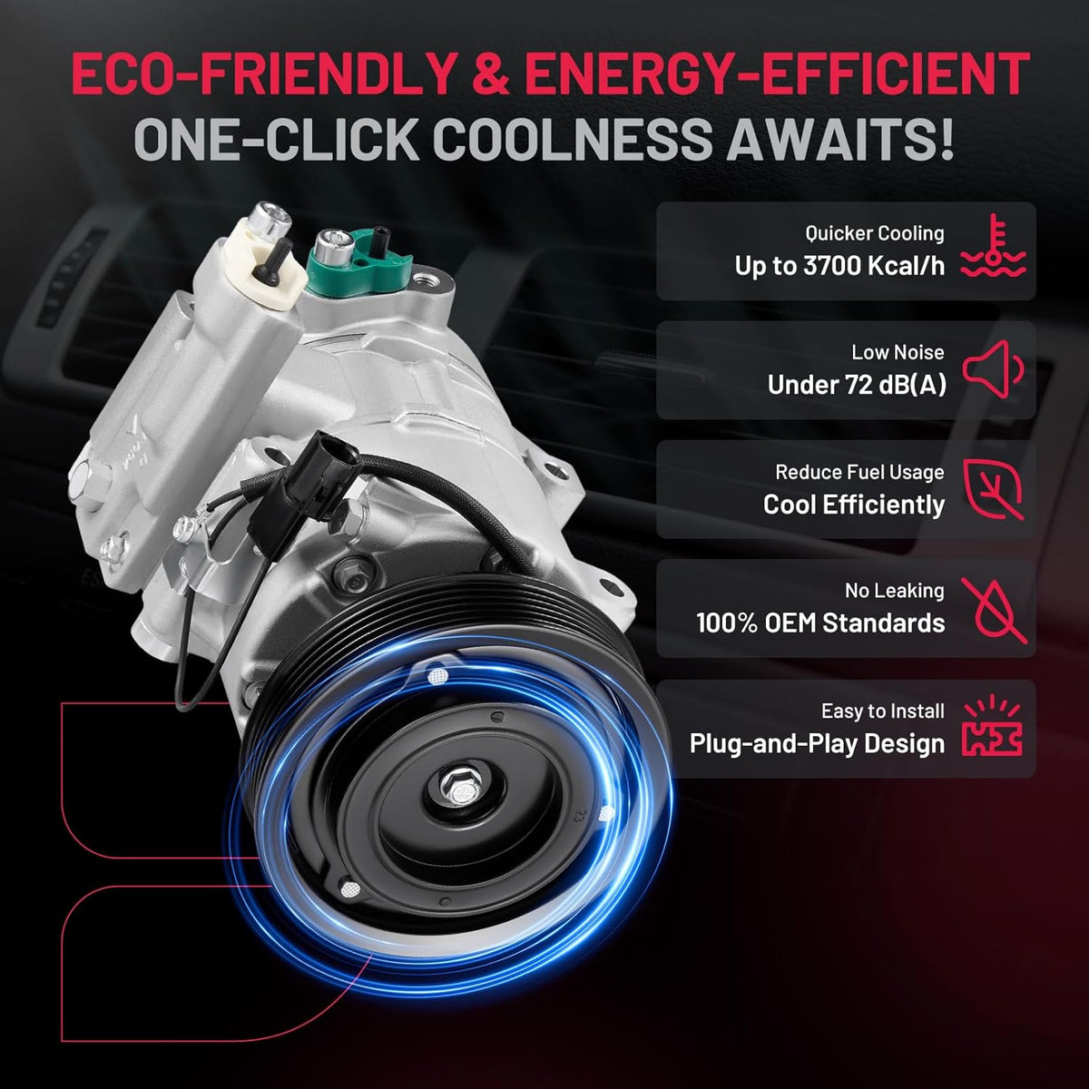 Reliability & Performance - 100% Brand New | IATF 16949 Certified | 50,000-Mile Accelerated Life Tested | Triple-Sealed: Vacuum + Pressure + Helium Leak Tested (99.9% Leak-Free) | Precision CNC-Machined Components | Faster Cooling & Quieter vs. Standard Compressors | Built for Longevity
