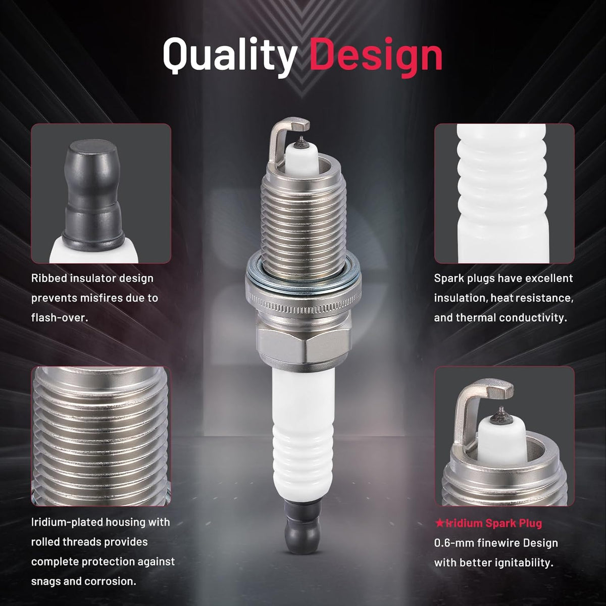 【Relive Performance】:OE standard performance and durability TS16949 certified manufacturer. All center electrodes are made from extremely fine iridium electrodes for good ignition performance. Insulators are made from isostatic ceramics for high density, strength, and good insulation
