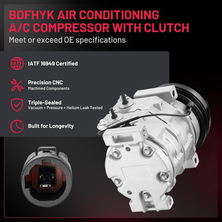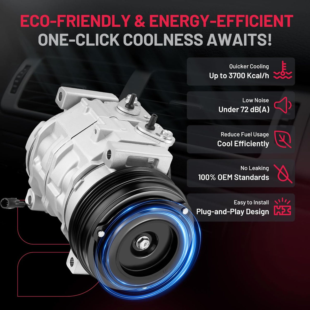 Reliability & Performance - 100% Brand New | IATF 16949 Certified | 50,000-Mile Accelerated Life Tested | Triple-Sealed: Vacuum + Pressure + Helium Leak Tested (99.9% Leak-Free) | Precision CNC-Machined Components | Faster Cooling & Quieter vs. Standard Compressors | Built for Longevity