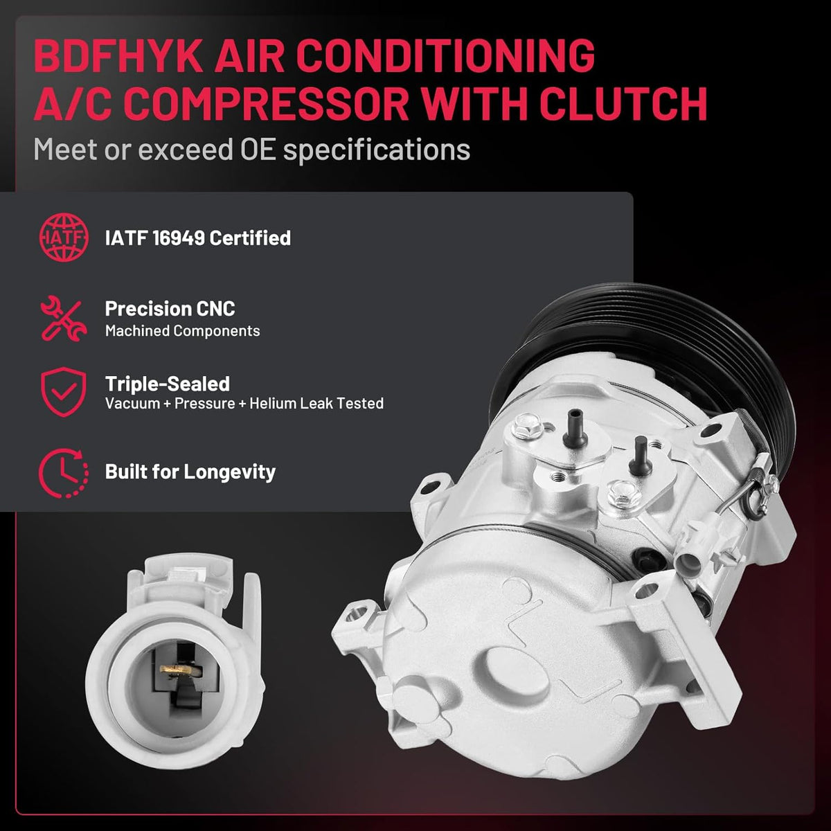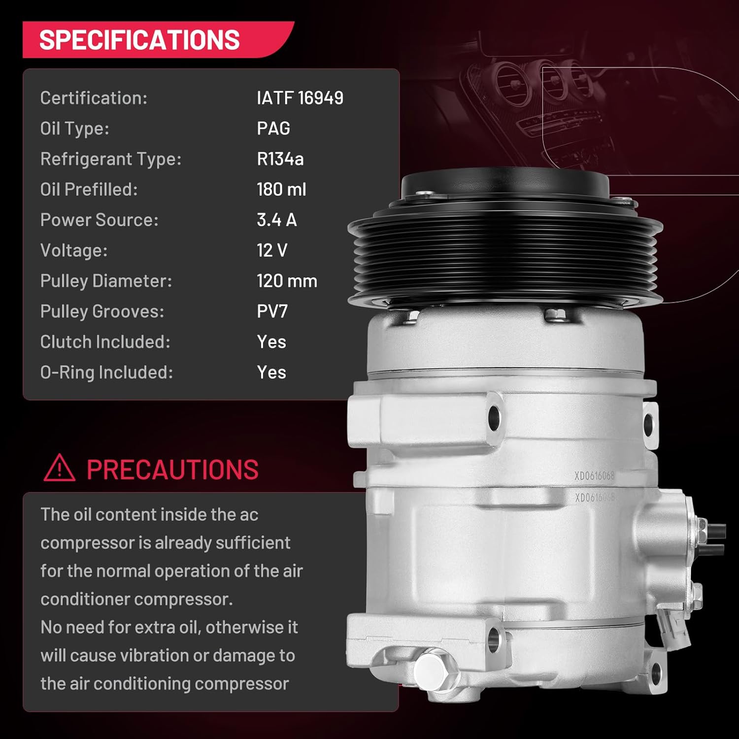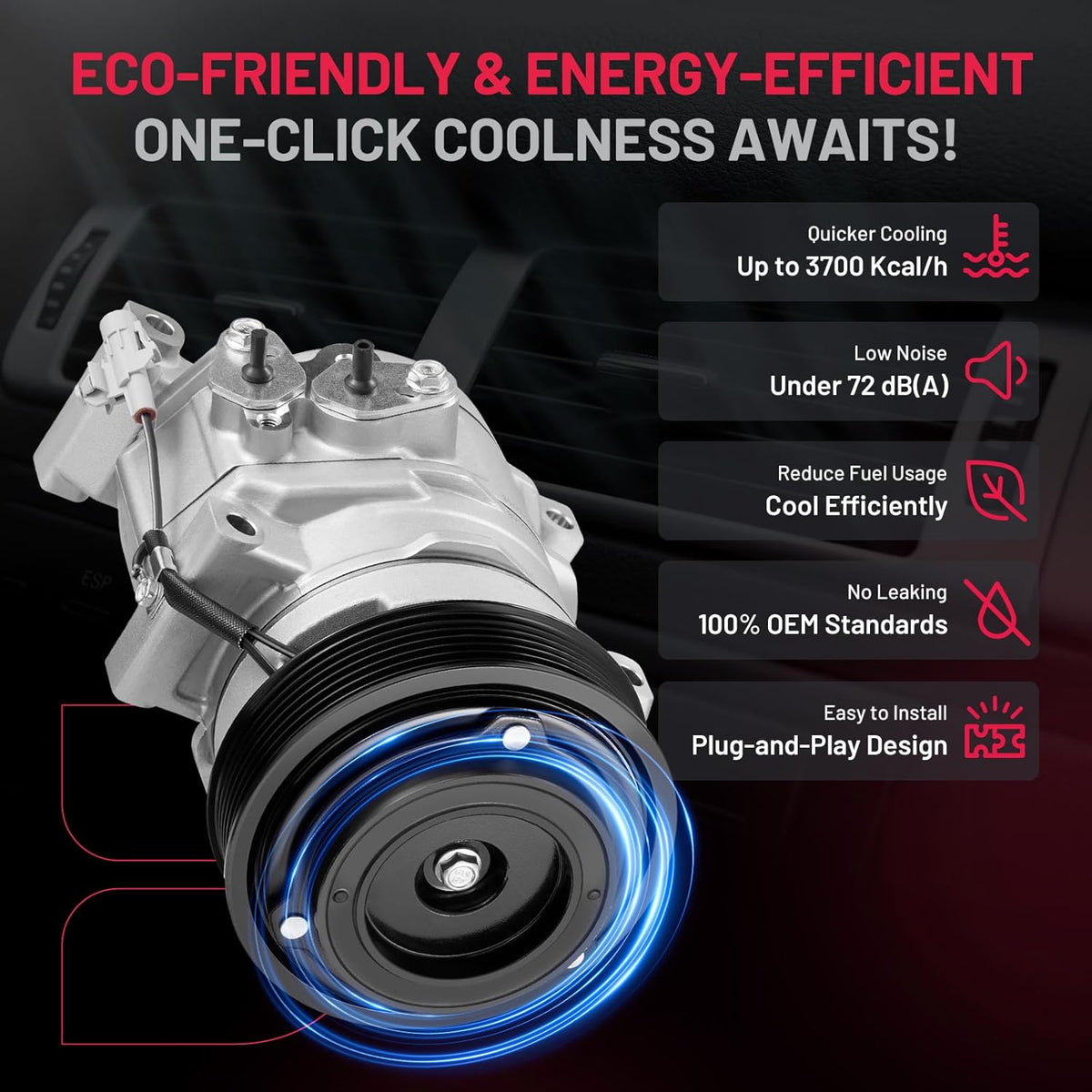 Reliability & Performance - 100% Brand New | IATF 16949 Certified | 50,000-Mile Accelerated Life Tested | Triple-Sealed: Vacuum + Pressure + Helium Leak Tested (99.9% Leak-Free) | Precision CNC-Machined Components | Faster Cooling & Quieter vs. Standard Compressors | Built for Longevity