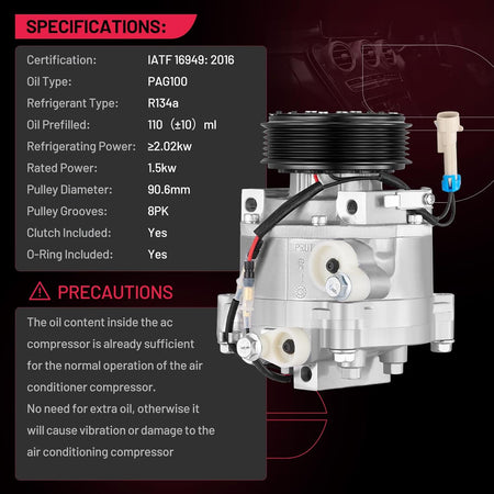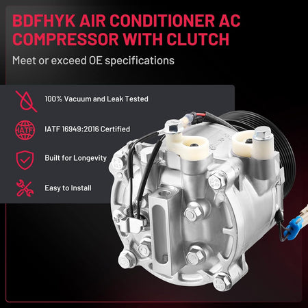 Superior Quality - The A/C Compressors for car are built in a IATF 16949:2016 Certified facility, meet or exceed OE specifications. Mechanically tested prior to leaving the factory ensures optimal performance and enhanced durability. Great life cycles.