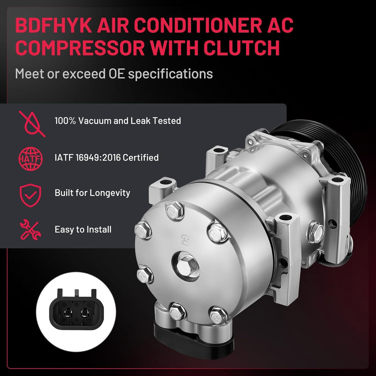Superior Quality - The A/C Compressors for car are built in a IATF 16949:2020 Certified facility, meet or exceed OE specifications. Mechanically tested prior to leaving the factory ensures optimal performance and enhanced durability. Great life cycles.