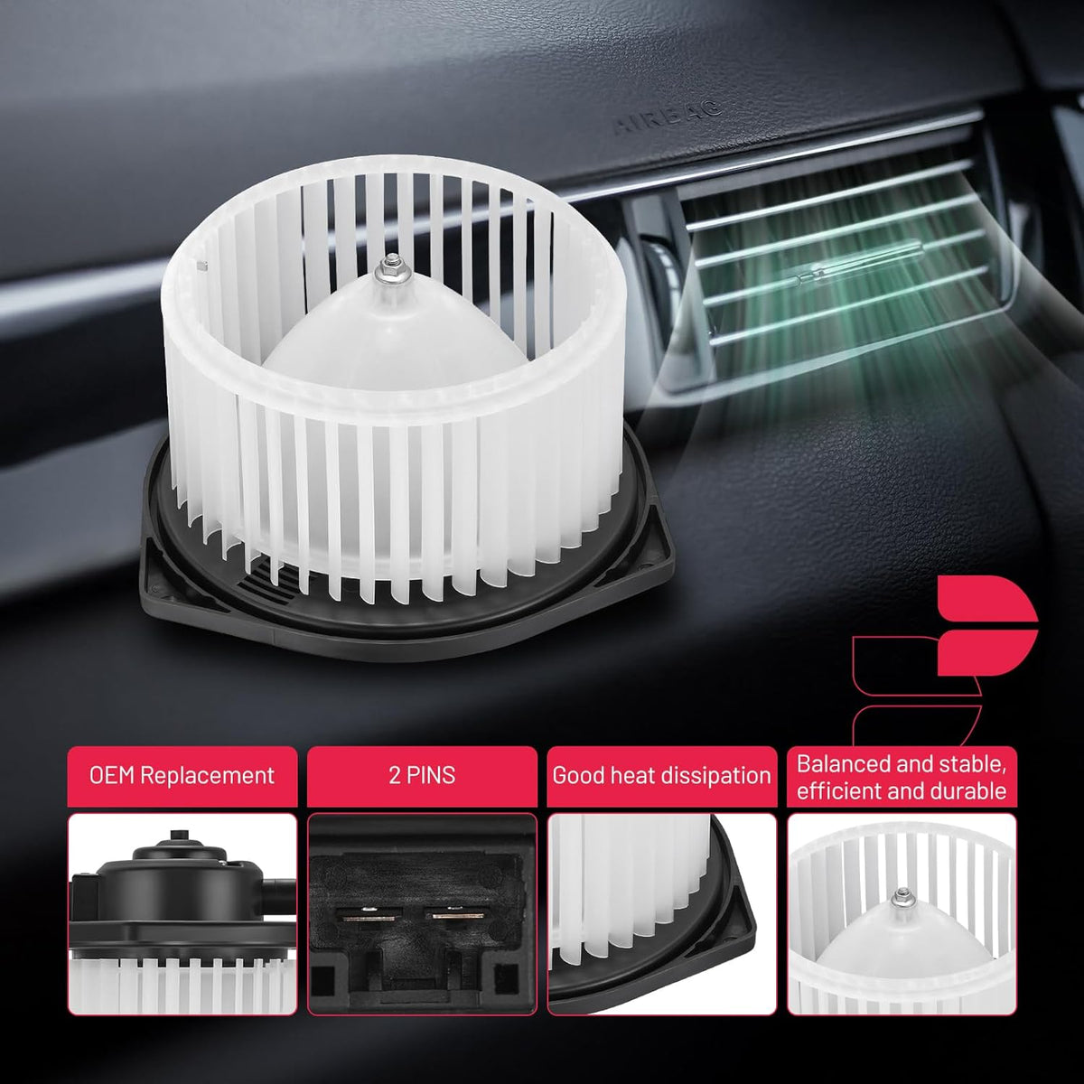 【 Blower Motor Features】:Built with high-quality materials, this blower motor is designed to withstand the rigors of daily use, offering long-lasting durability and reliable performance.Despite its powerful performance, this blower motor operates quietly, ensuring a comfortable and noise-free driving experience.