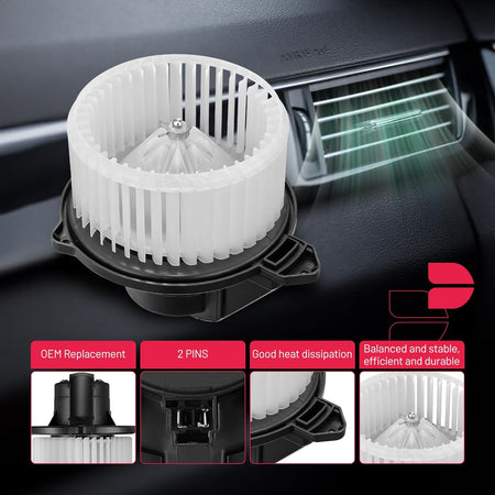 【 Blower Motor Features】:Built with high-quality materials, this blower motor is designed to withstand the rigors of daily use, offering long-lasting durability and reliable performance.Despite its powerful performance, this blower motor operates quietly, ensuring a comfortable and noise-free driving experience.