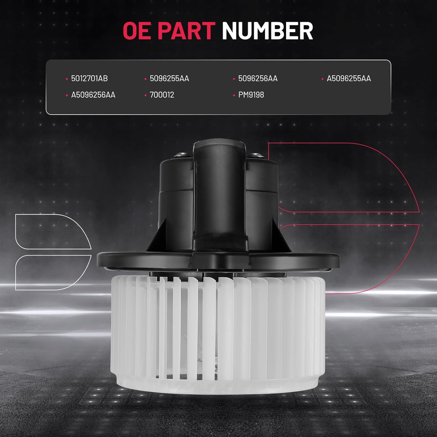 【Compatible Part Numbers】:Replacement for Blower Motor OE Number:5012701AB 5096255AA 5096256AA A5096255AA A5096256AA 700012 PM9198.