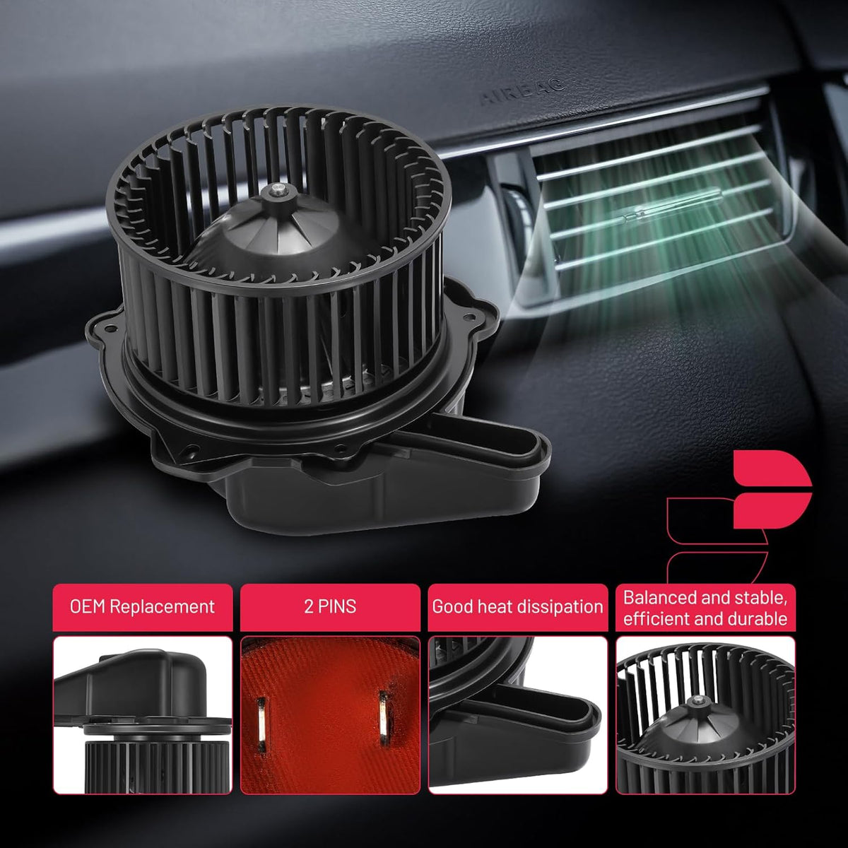 【 Blower Motor Features】:Built with high-quality materials, this blower motor is designed to withstand the rigors of daily use, offering long-lasting durability and reliable performance.Despite its powerful performance, this blower motor operates quietly, ensuring a comfortable and noise-free driving experience.