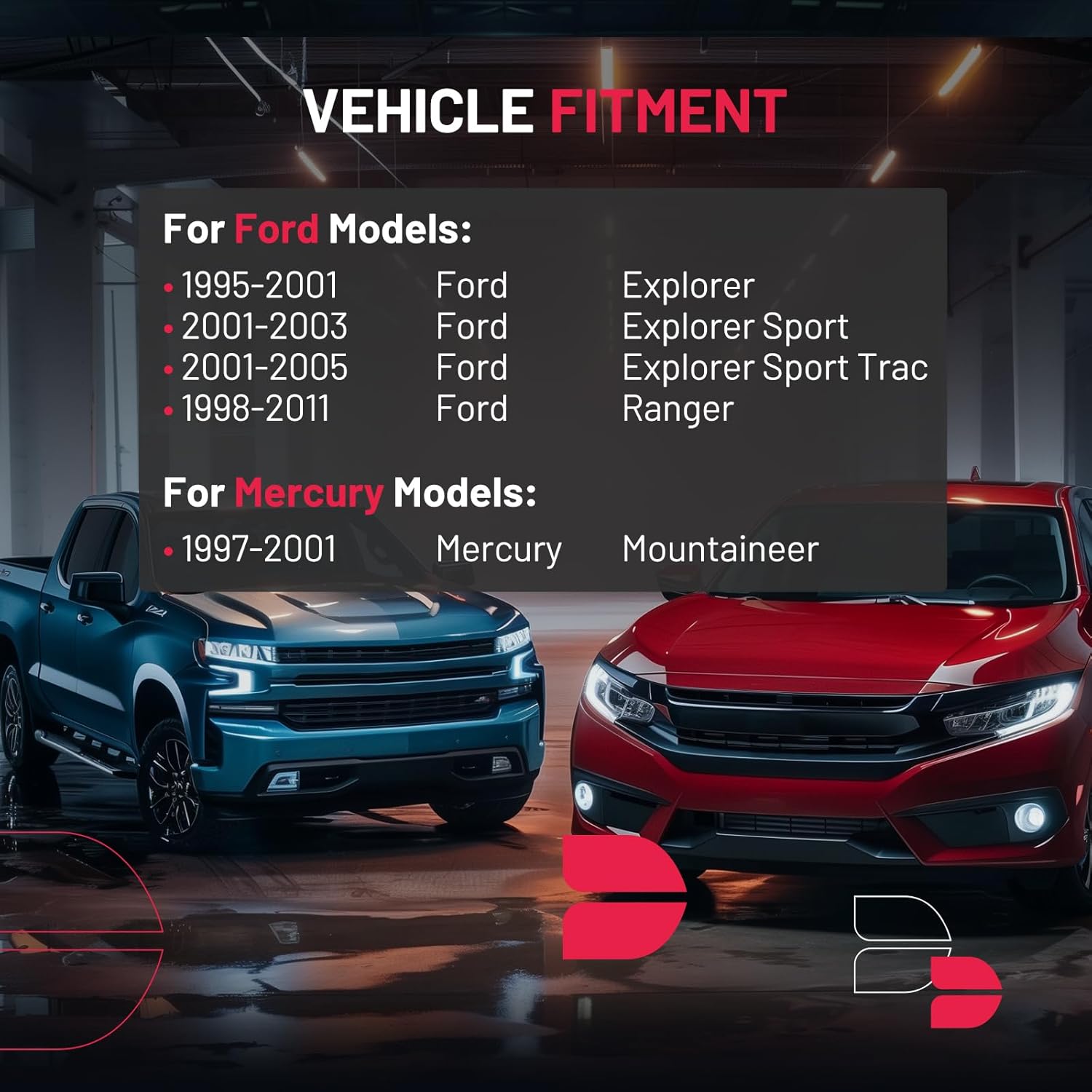 【Fitment information】:Compatible with Ford Explorer 1995-2001, Ranger 1998-2011, Explorer Sport Trac 2001-2005; Compatible with Mercury Mountaineer 1997-2001.Please confirm the compatibility according to the year/make/model of your vehicle and the OE number of the replaceable part.